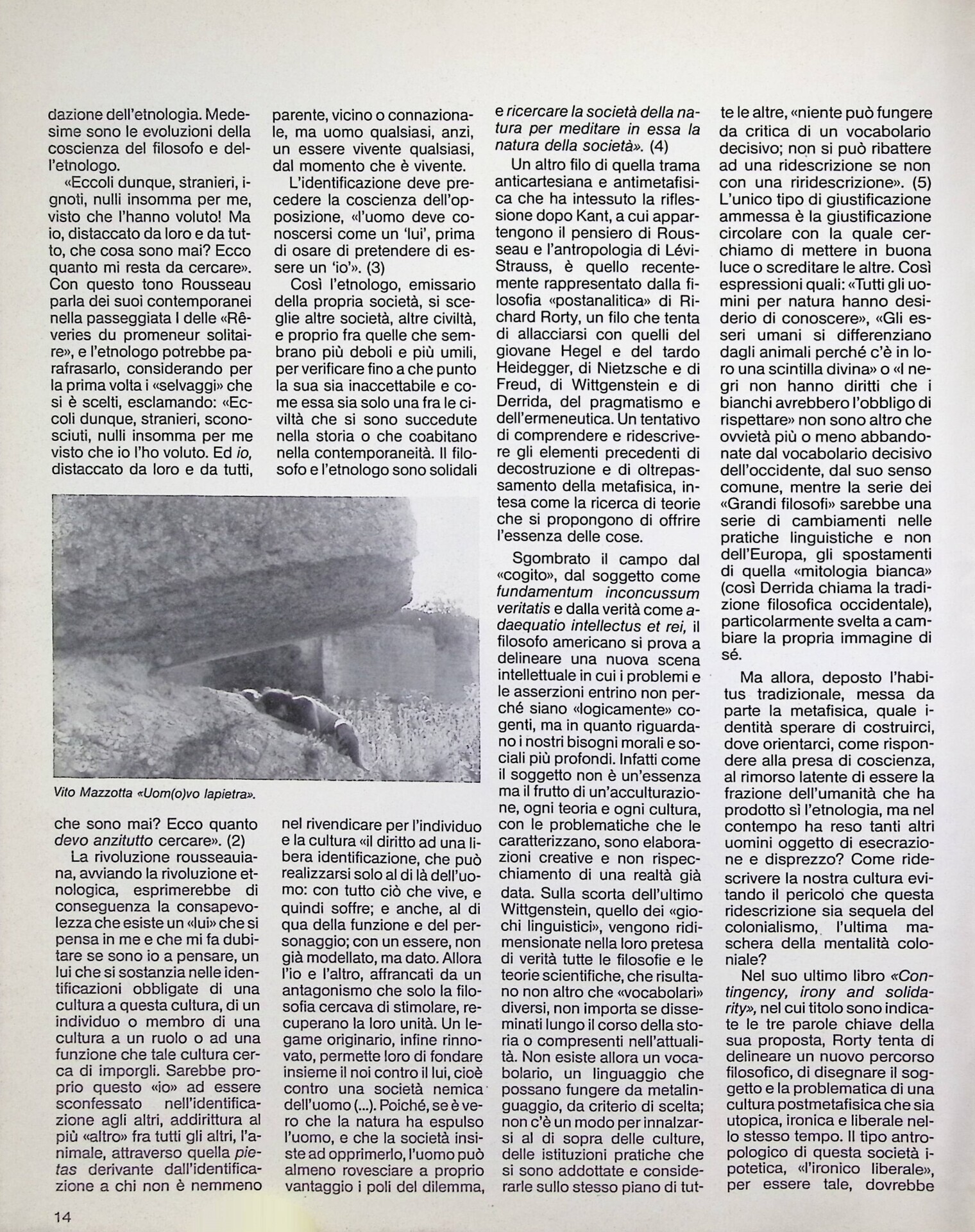 | Descrizione | Articolo dedicato al tema dell’identità e dell’alterità ai tempi della globalizzazione, che invita a mettere “in discussione ogni etnocentrismo e ogni tentativo di rivolgersi a un modello antropologico assoluto”. |