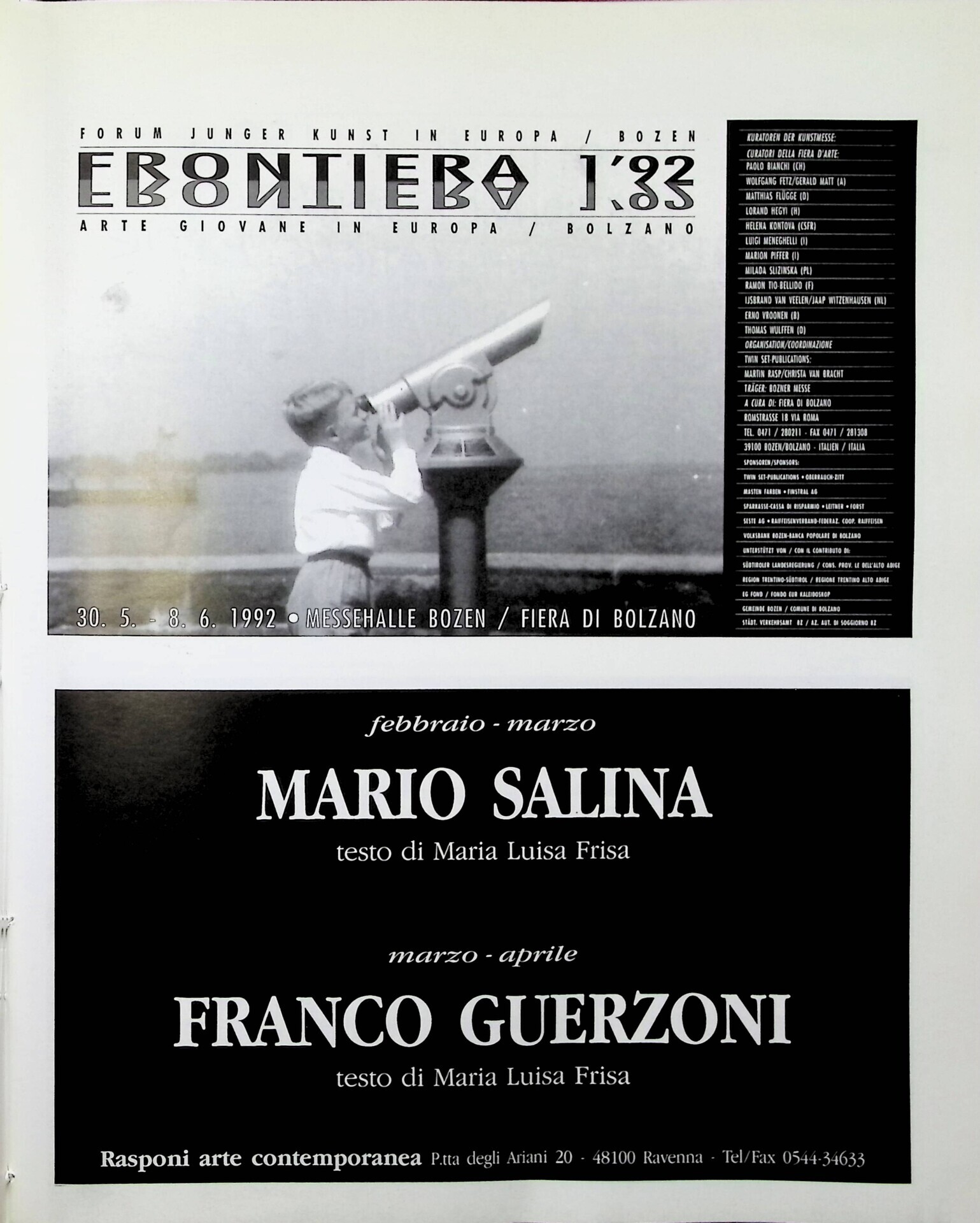 | Descrizione | Pubblicità della mostra Frontiera 1 '92. Arte giovane in Europa. |
