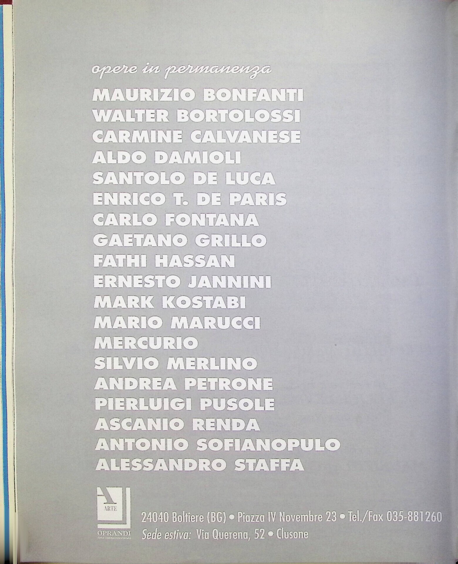 | Descrizione | Pubblicità della mostra da Oprandi Arte a Boltiere (BG), con la partecipazione, tra gli altri, di Fathi Hassan [egiziano]. |