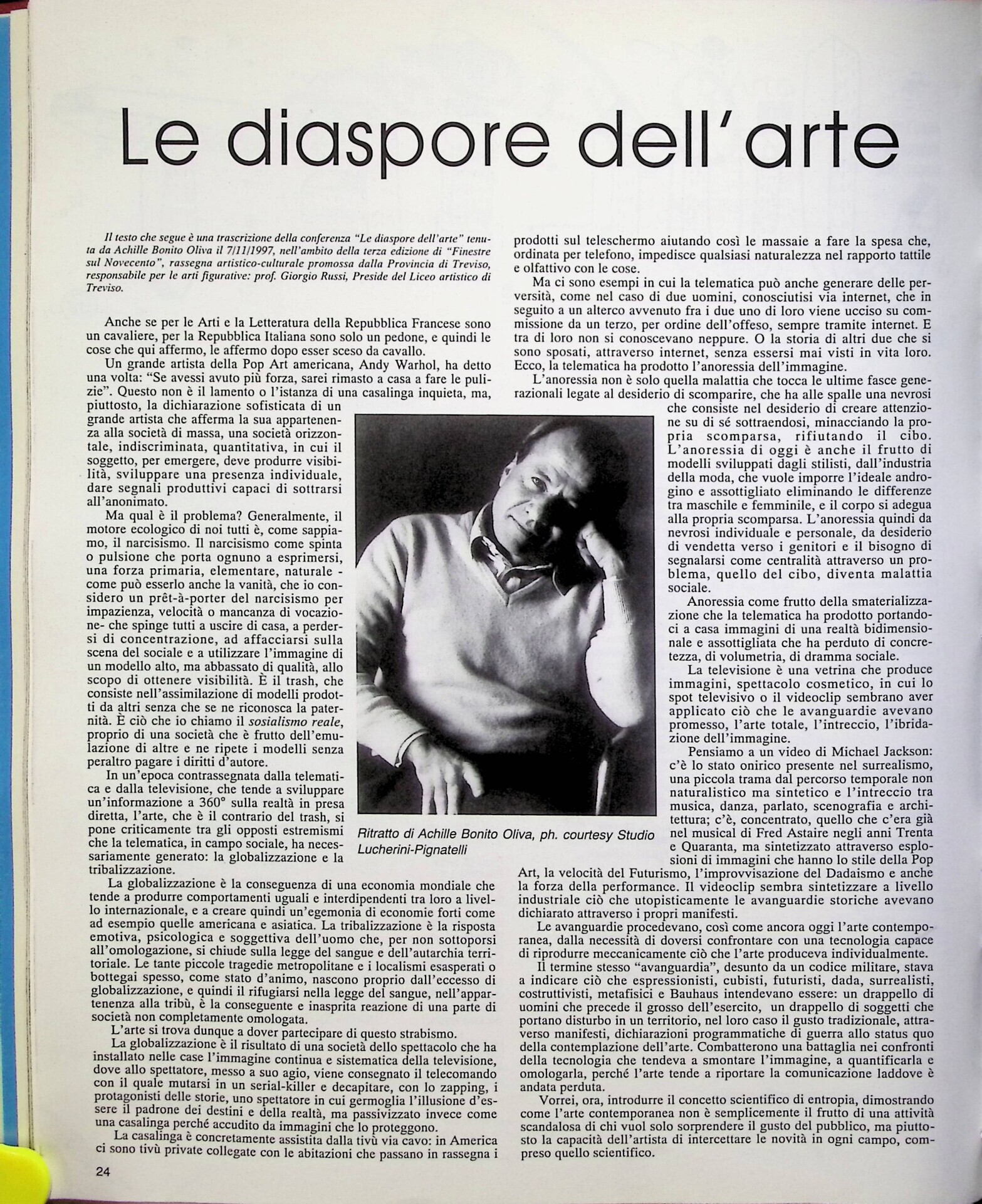 Achille Bonito Oliva, Le diaspore dell'arte, «Juliet», n. 88, giugno 1998, pp. 24-25