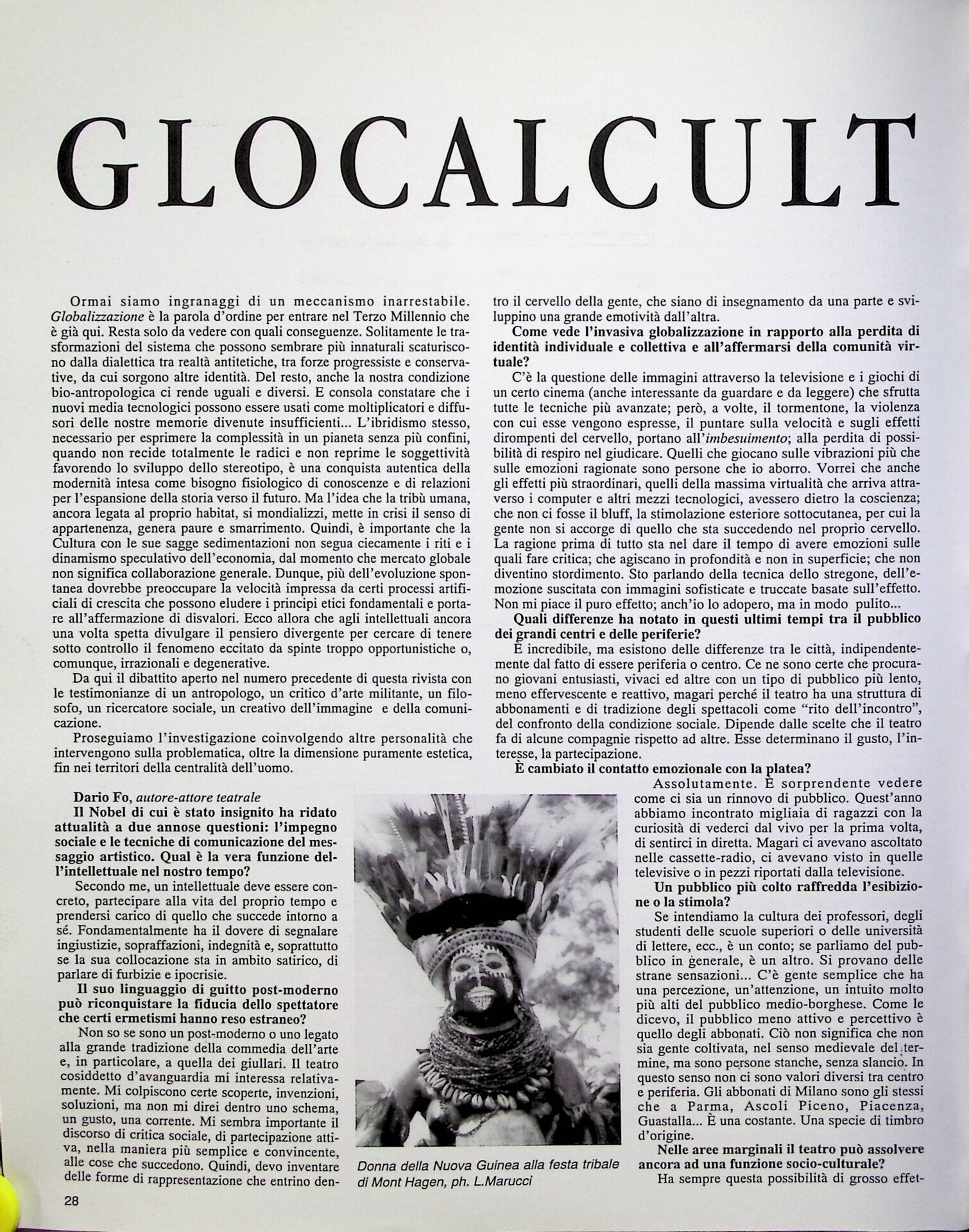 Luciano Marucci, Glocalcult, «Juliet», n. 88, giugno 1998, pp. 28-29