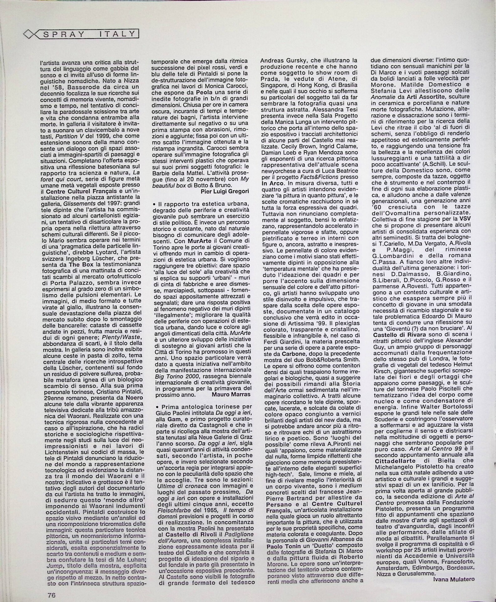 | Cit. bibliografica | Ivana Mulatero, Torino, «Juliet», n. 94, ottobre-novembre 1999, pp. 75-76 |