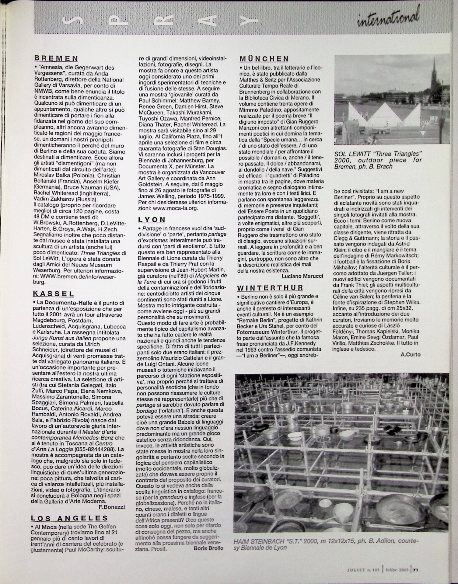 | Cit. bibliografica | Boris Brollo, Lyon, «Juliet», n. 101, febbraio-marzo 2001, p. 71 |