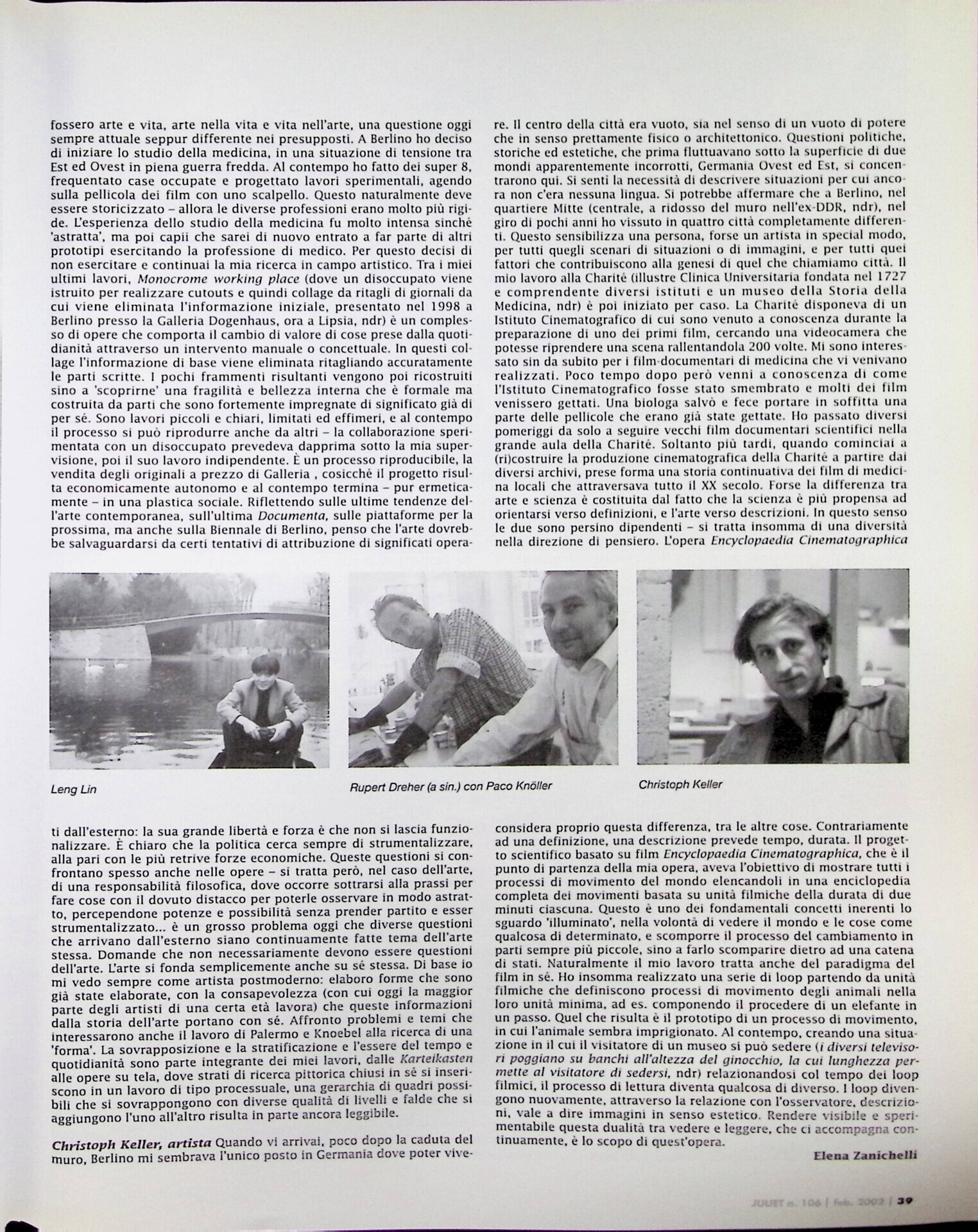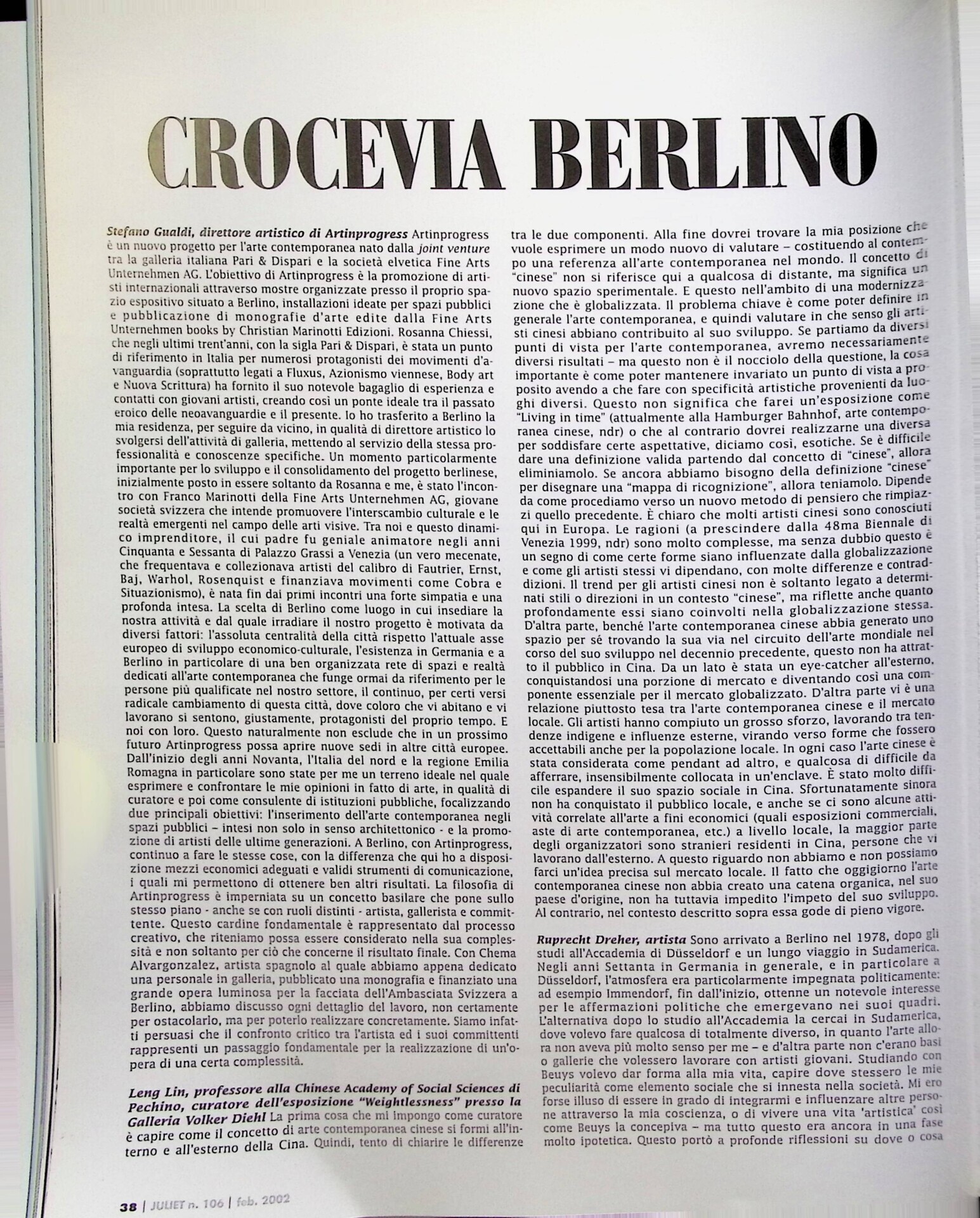 Elena Zanichelli, Crocevia Berlino, «Juliet», n. 106, febbraio-marzo 2002, pp. 38-39