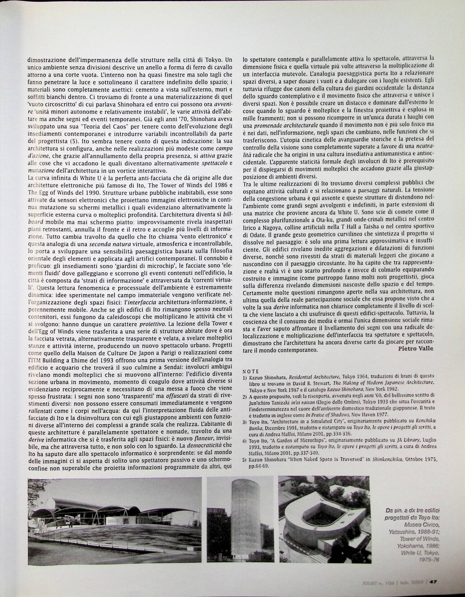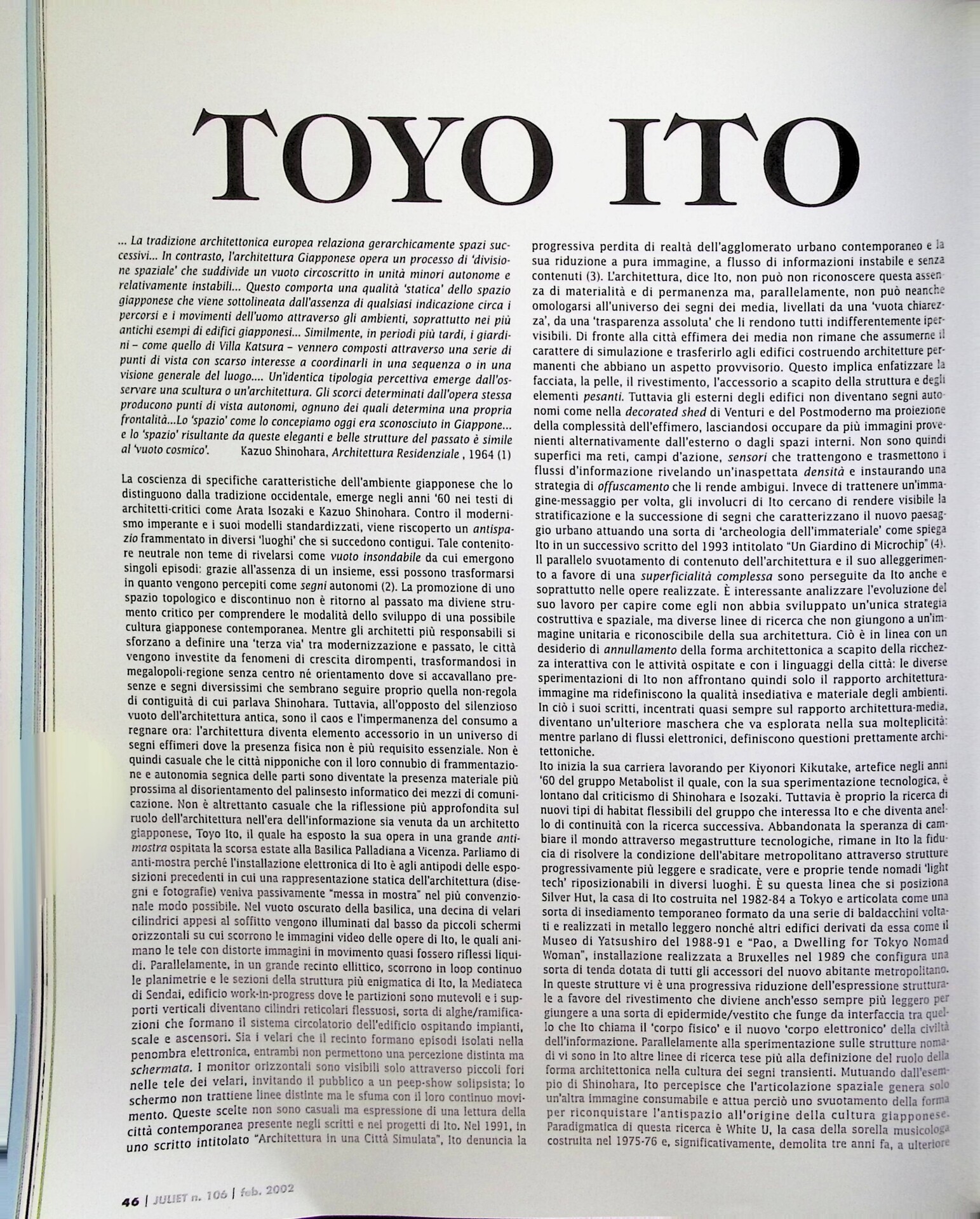Pietro Valle, Toyo Ito, «Juliet», n. 106, febbraio-marzo 2002, pp. 46-47