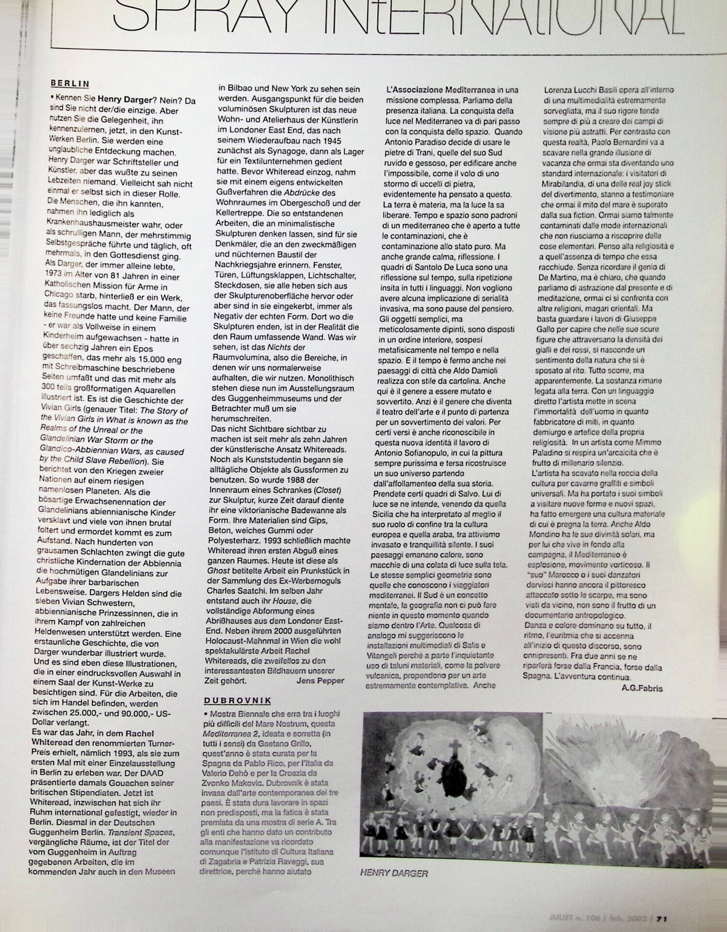 A.G. Fabris, Dubrovnik, «Juliet», n. 106, febbraio-marzo 2002, p. 71