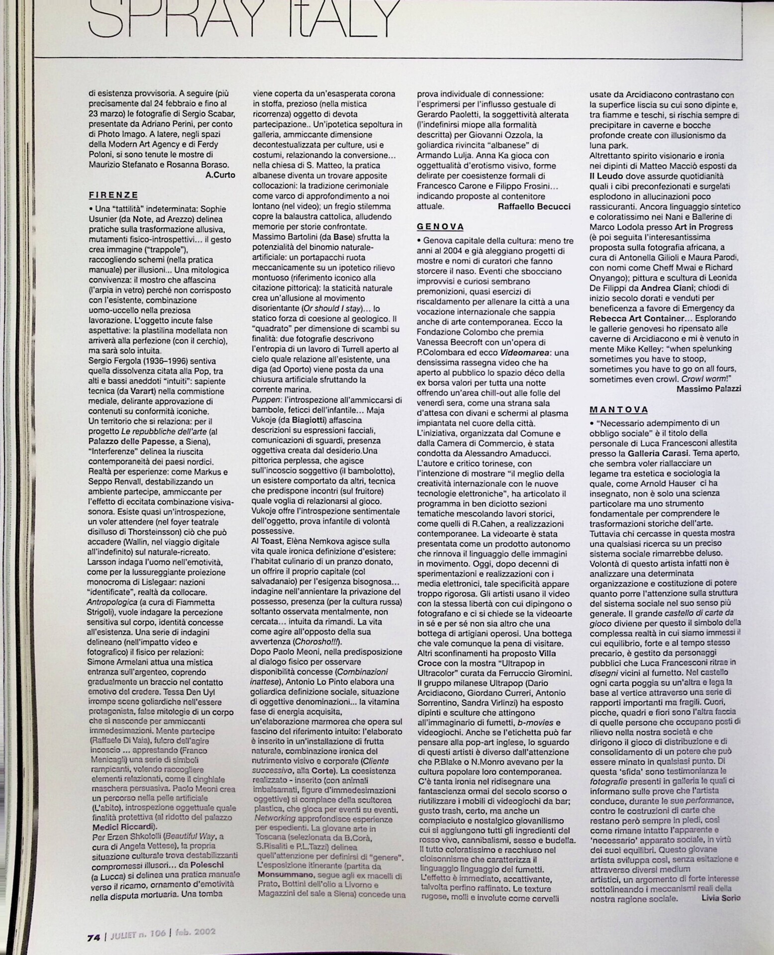 Raffaello Becucci, Firenze, «Juliet», n. 106, febbraio-marzo 2002, p. 74