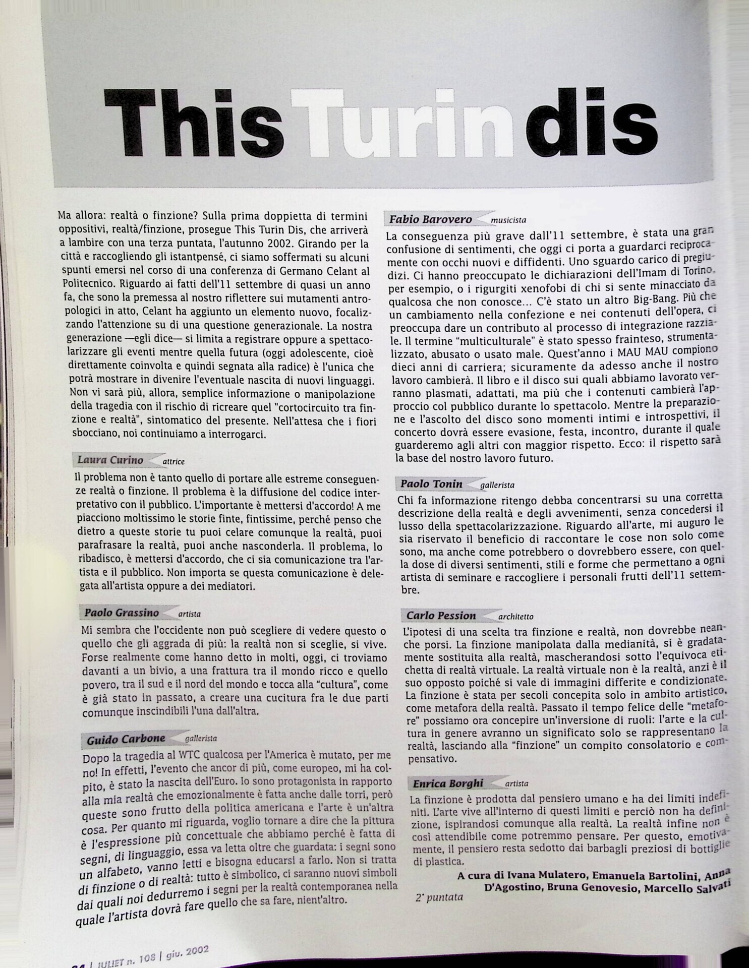 Emanuela Bartolini, Anna D'Agostino, Bruna Genovesio, Ivana Mulatero, Marcello Salvati, This Turin dis, «Juliet», n. 108, giugno 2002, pp. 34-35