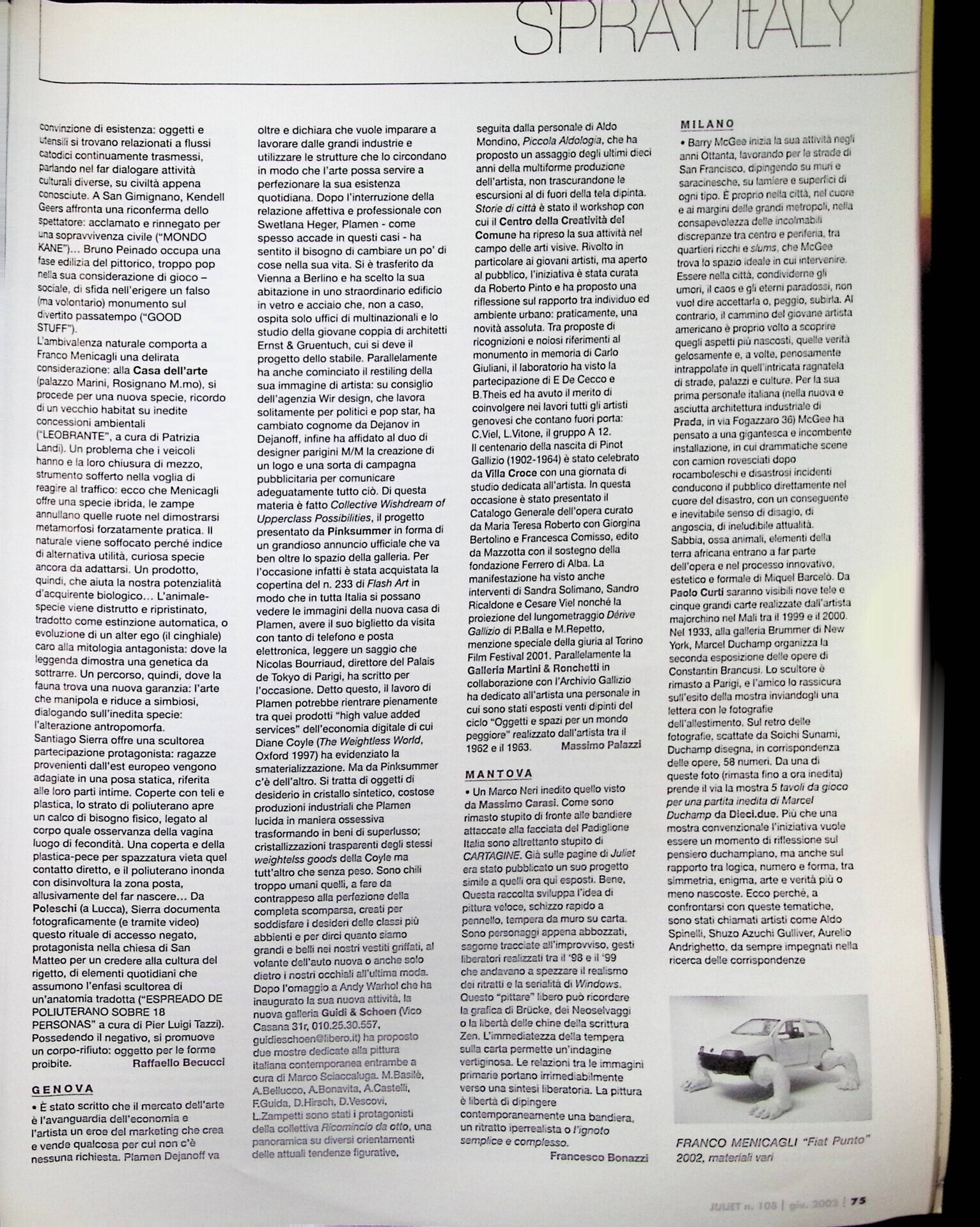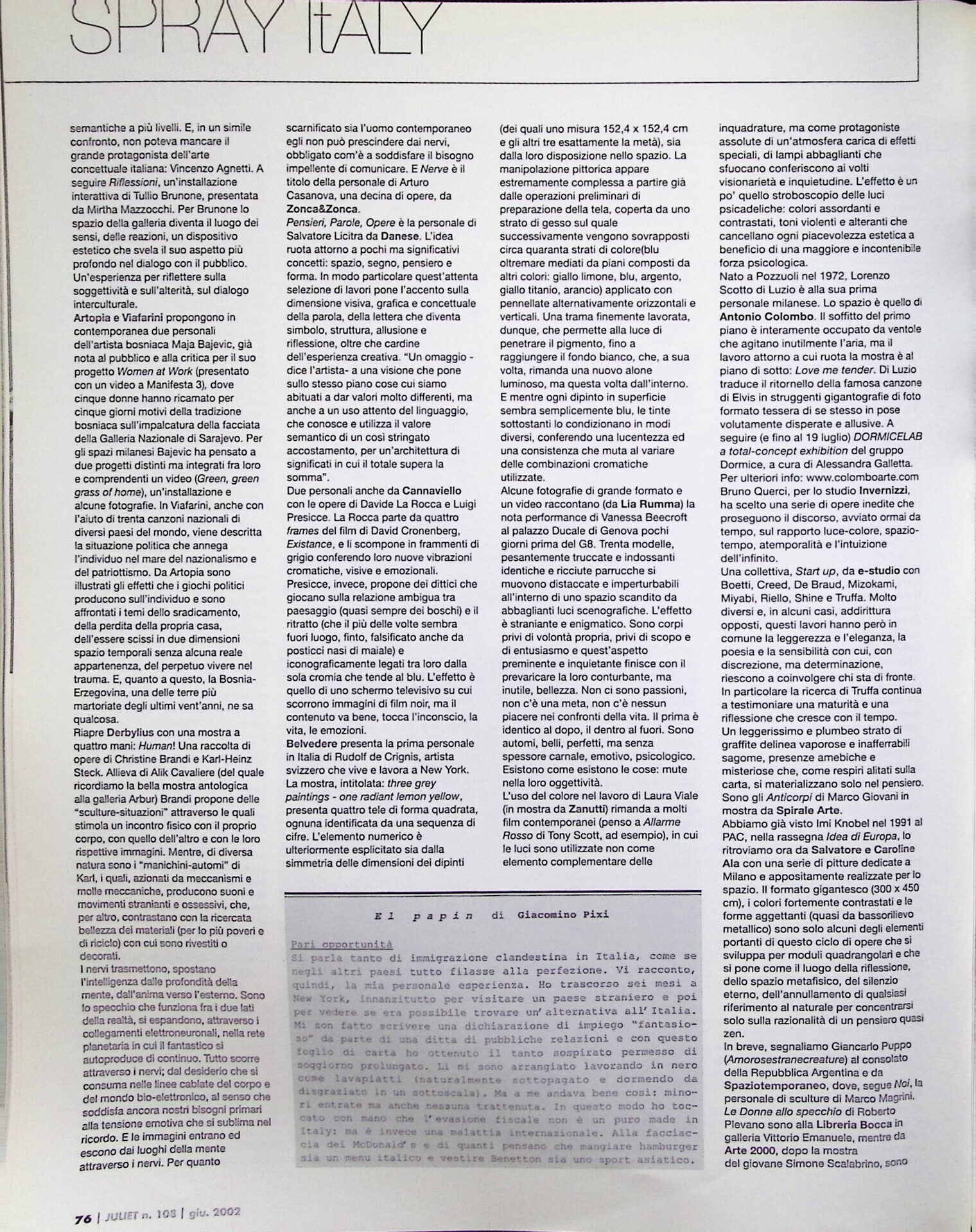 | Cit. bibliografica | Lorella Giudici, Milano, «Juliet», n. 108, giugno 2002, pp. 75-77 |