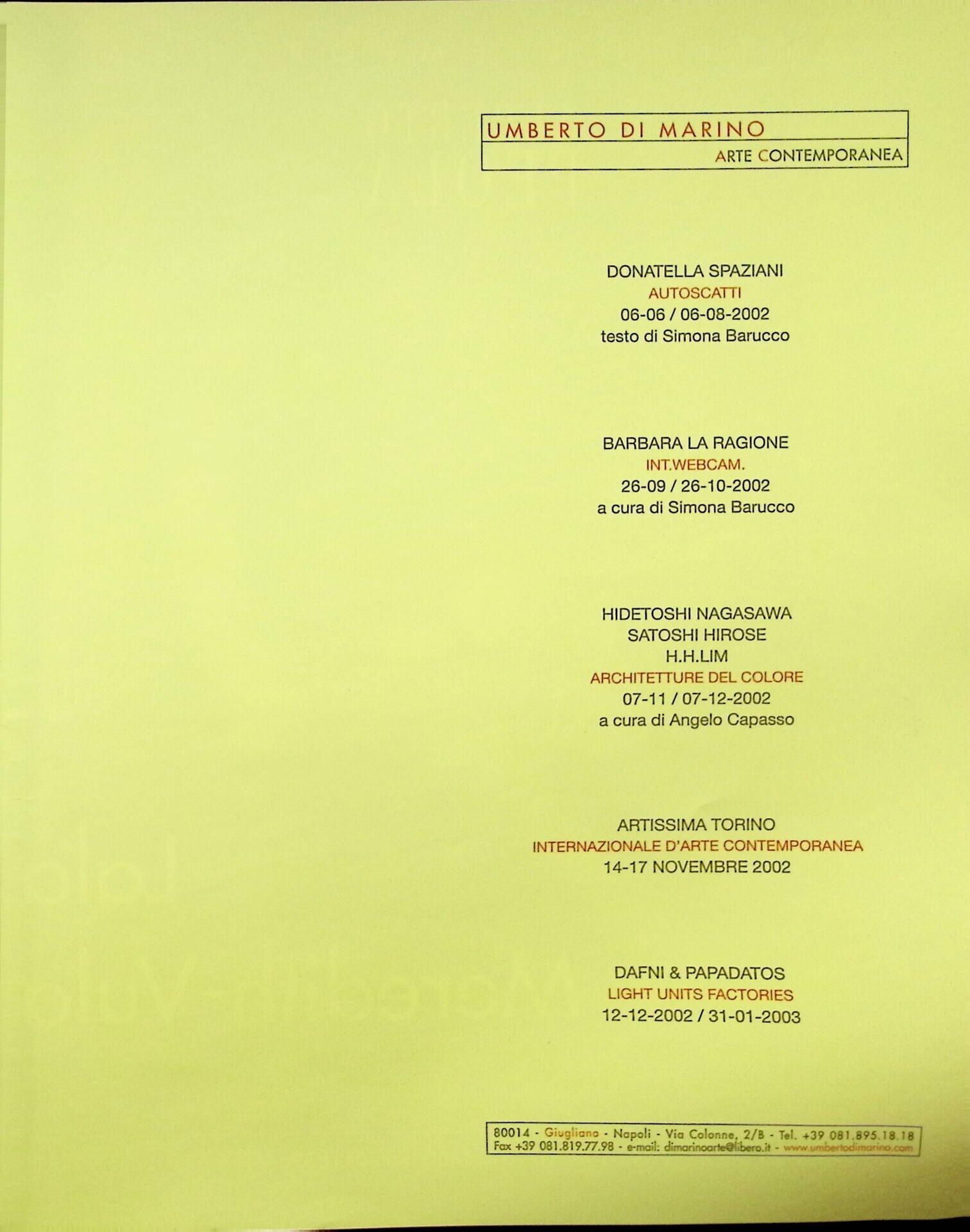 | Descrizione | Segnalazione di Hidetoshi Nagasawa [giapponese] alla galleria milanese Umberto di Marino. |