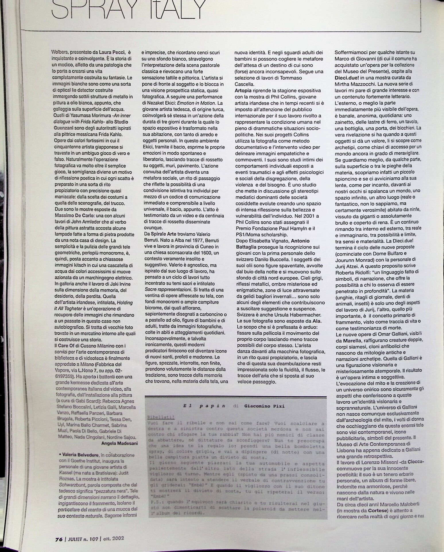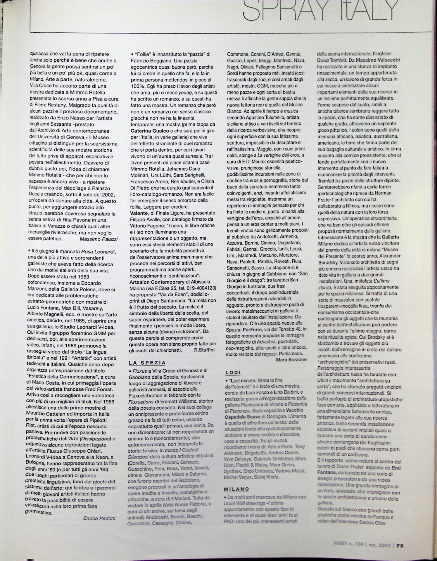 Angela Madesani, Milano, «Juliet», n. 109, ottobre-novembre 2002, pp. 75-76