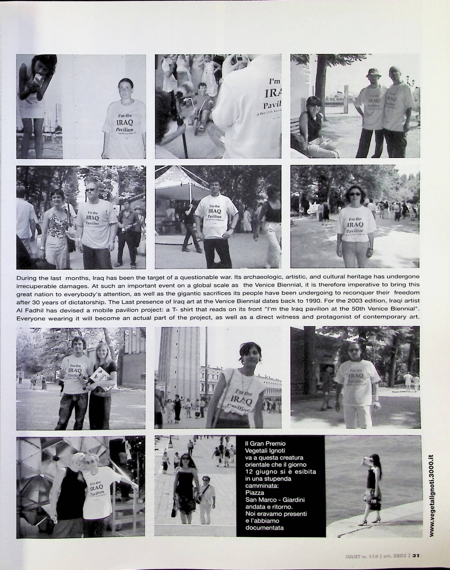 | Illustrazioni rilevanti | Al Fadhil, I'm the Iraq Pavillion, 2004 |