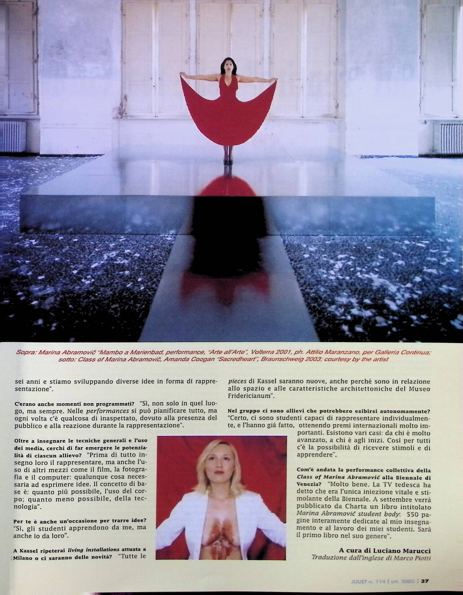 Luciano Marucci, Marina Abramovic. Performer di Classe, «Juliet», n. 114, ottobre-novembre 2003, pp. 36-37