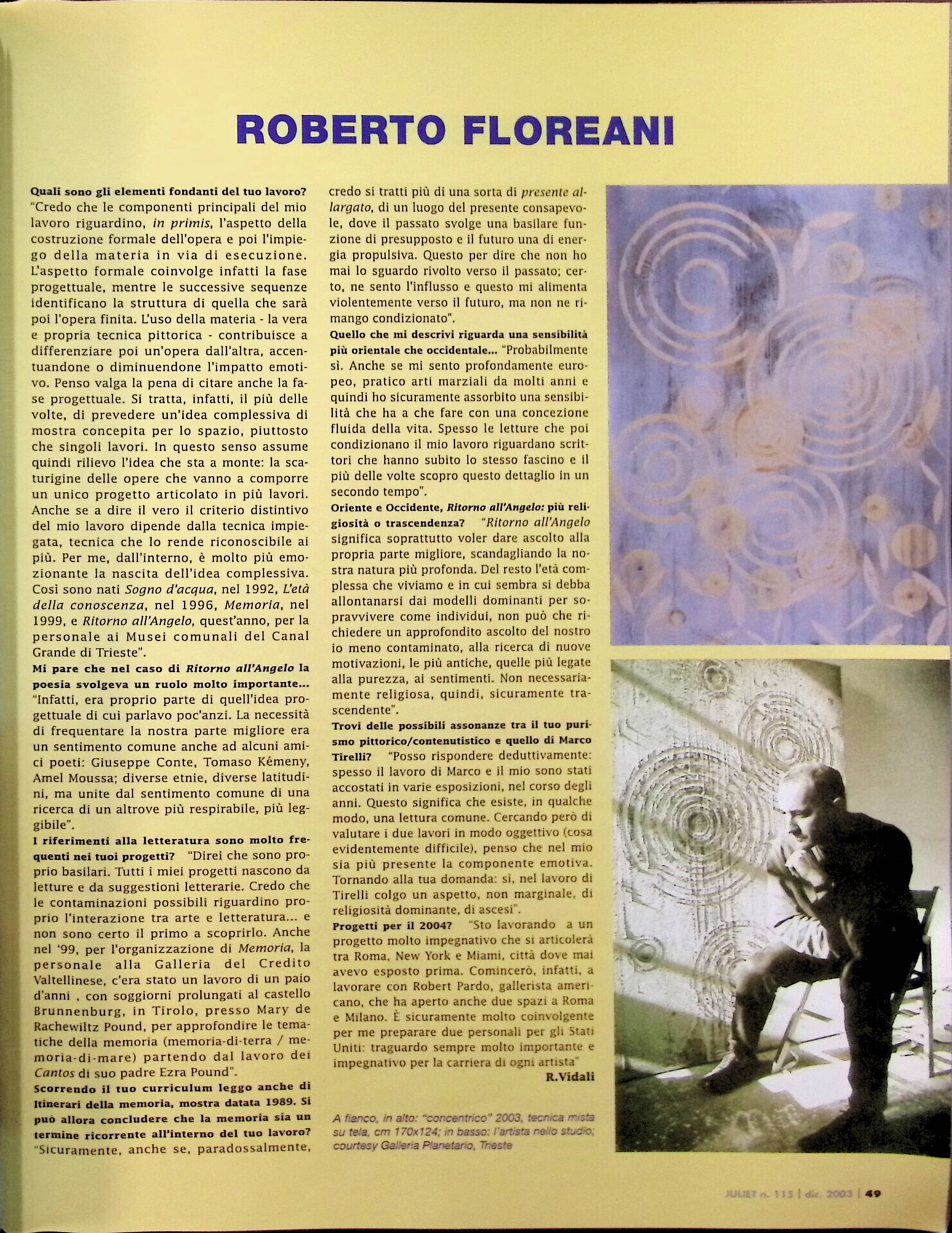 Roberto Vidali, Roberto Floreani, «Juliet», n. 115, dicembre 2003 - gennaio 2004, p. 49