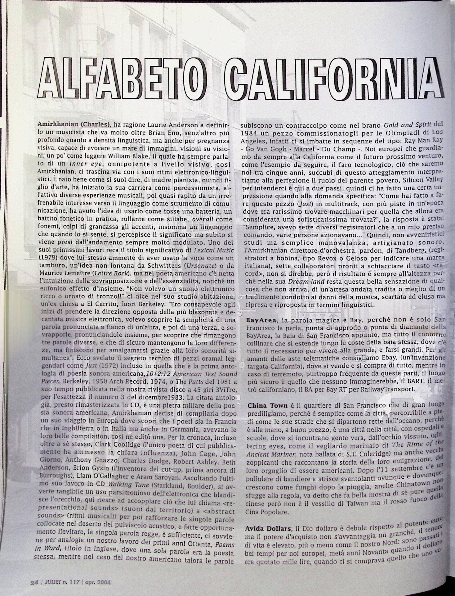 Enzo Minarelli, Alfabeto californiano, «Juliet», n. 117, aprile-maggio 2004, pp. 24-27