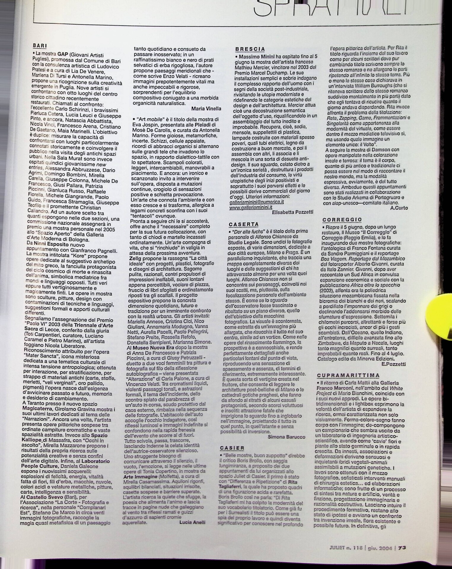 Elisabetta Pozzetti, Correggio, «Juliet», n. 118, giugno 2004, p. 73