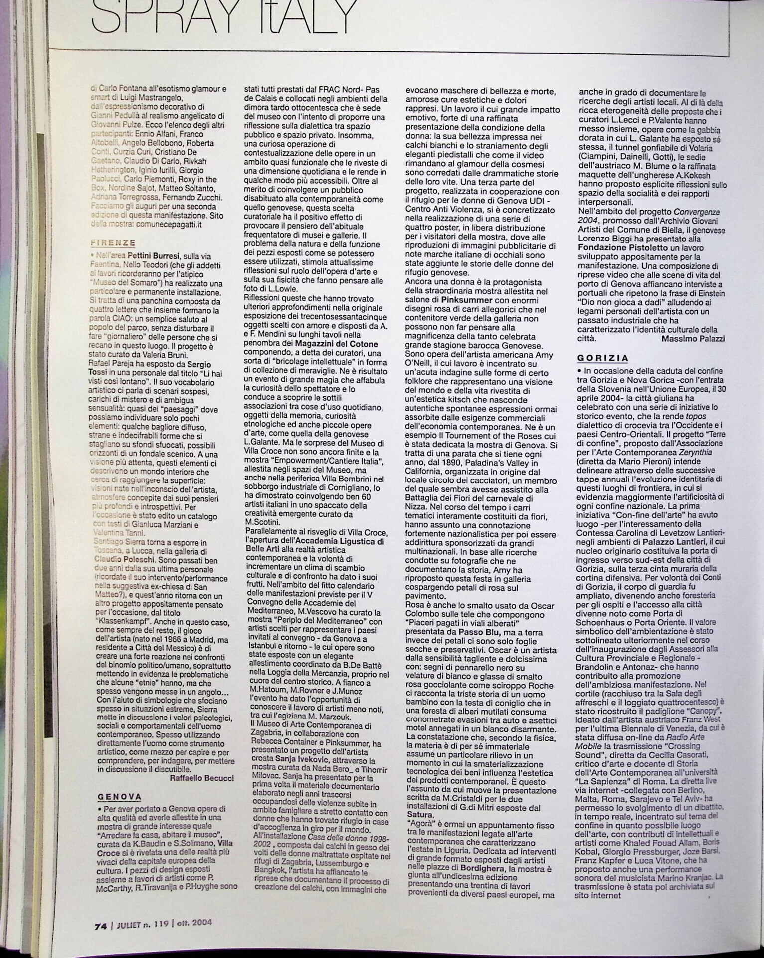 | Cit. bibliografica | Massimo Palazzi, Genova, «Juliet», n. 119, ottobre-novembre 2004, p. 74 |
