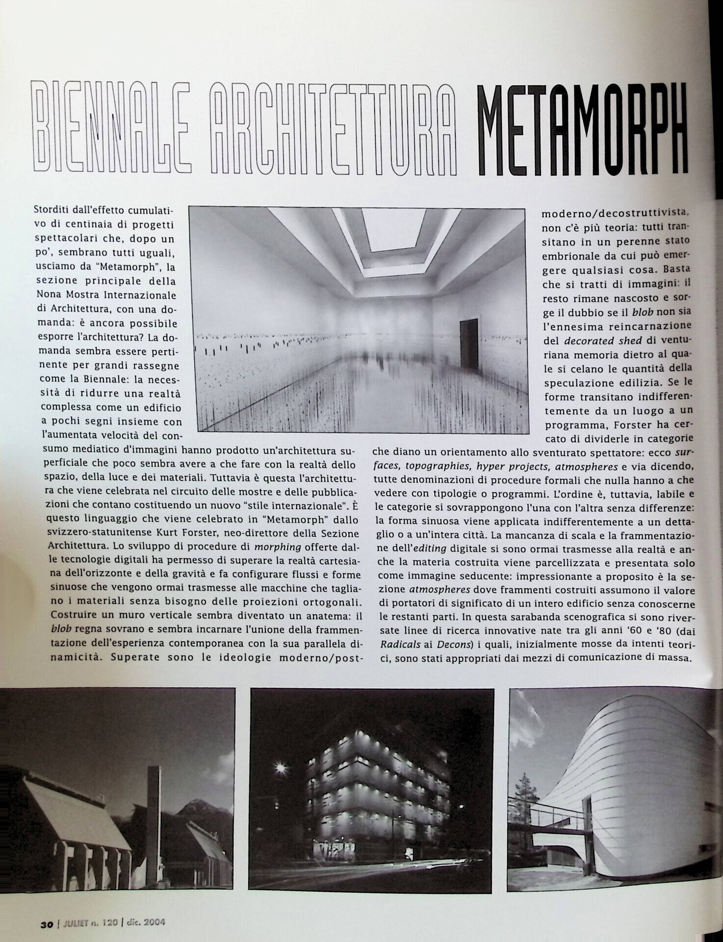 Pietro Valle, Biennale Architettura Metamorph, «Juliet», n. 120, dicembre 2004 - gennaio 2005, pp. 30-31