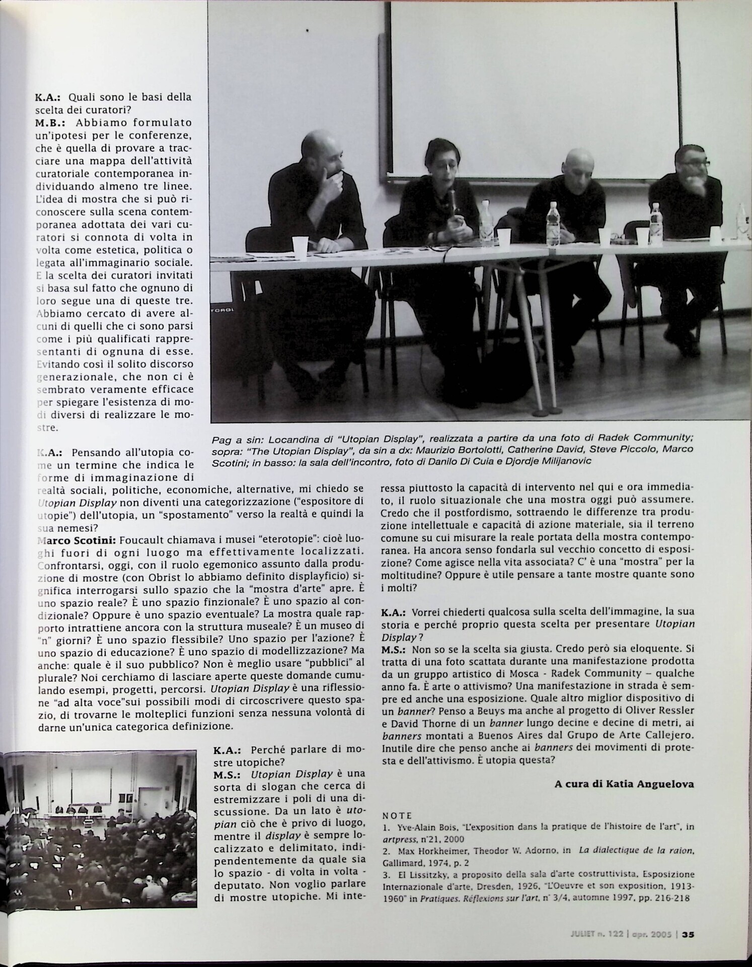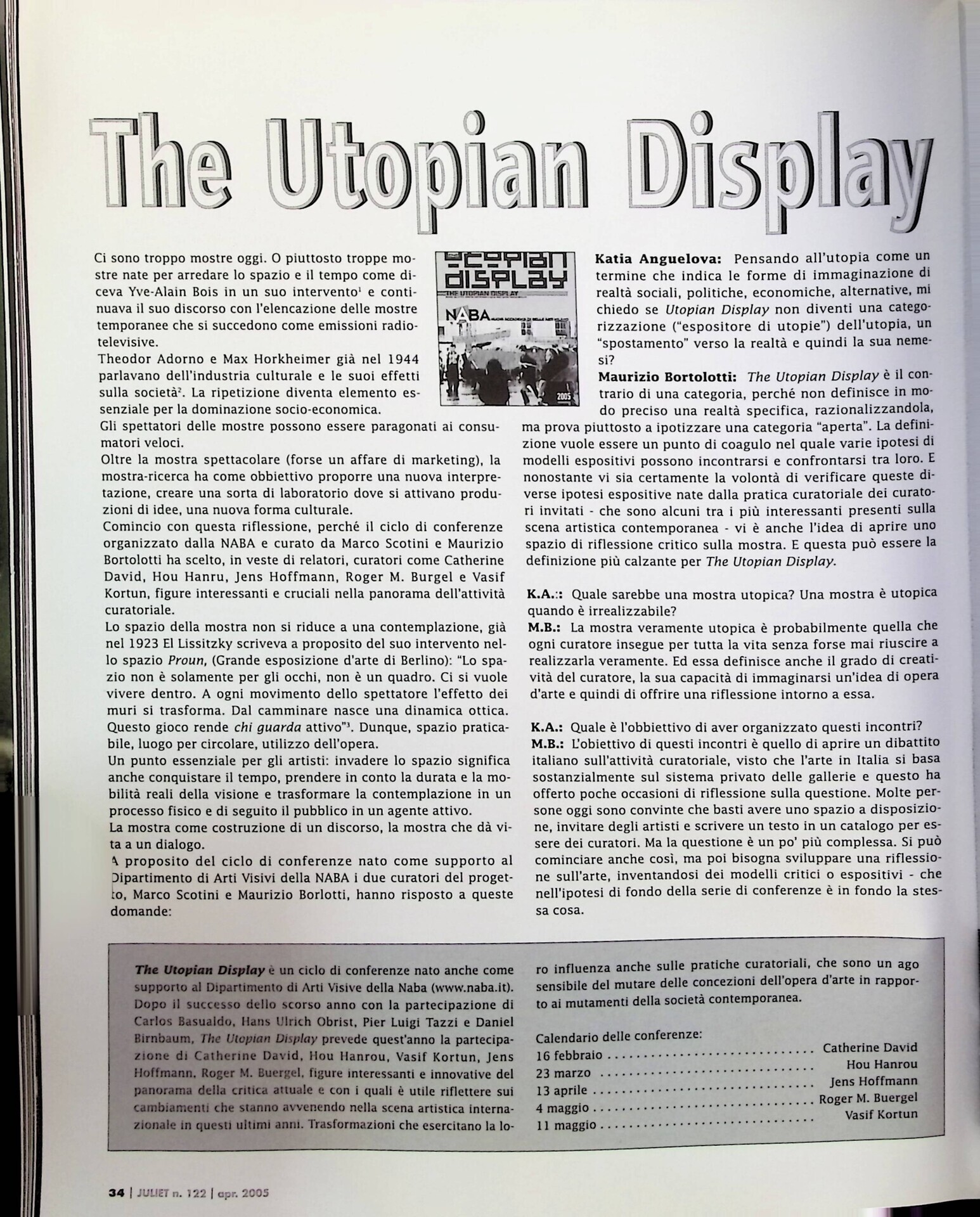 Katia Anguelova, The Utopian Display, «Juliet», n. 122, aprile-maggio 2005, pp. 34-35