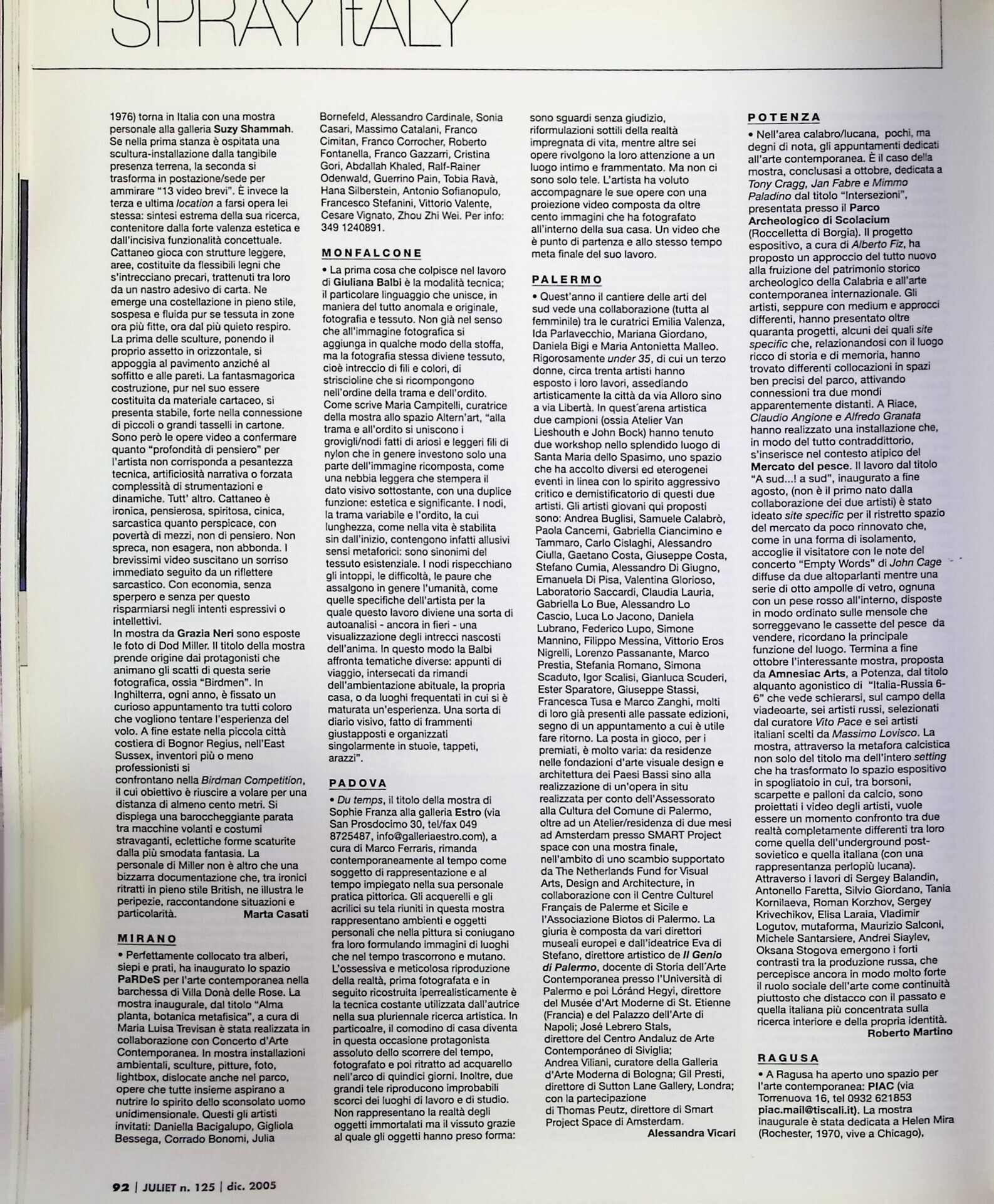 Marta Casati, Milano, «Juliet», n. 125, dicembre 2005 - gennaio 2006, pp. 91-92