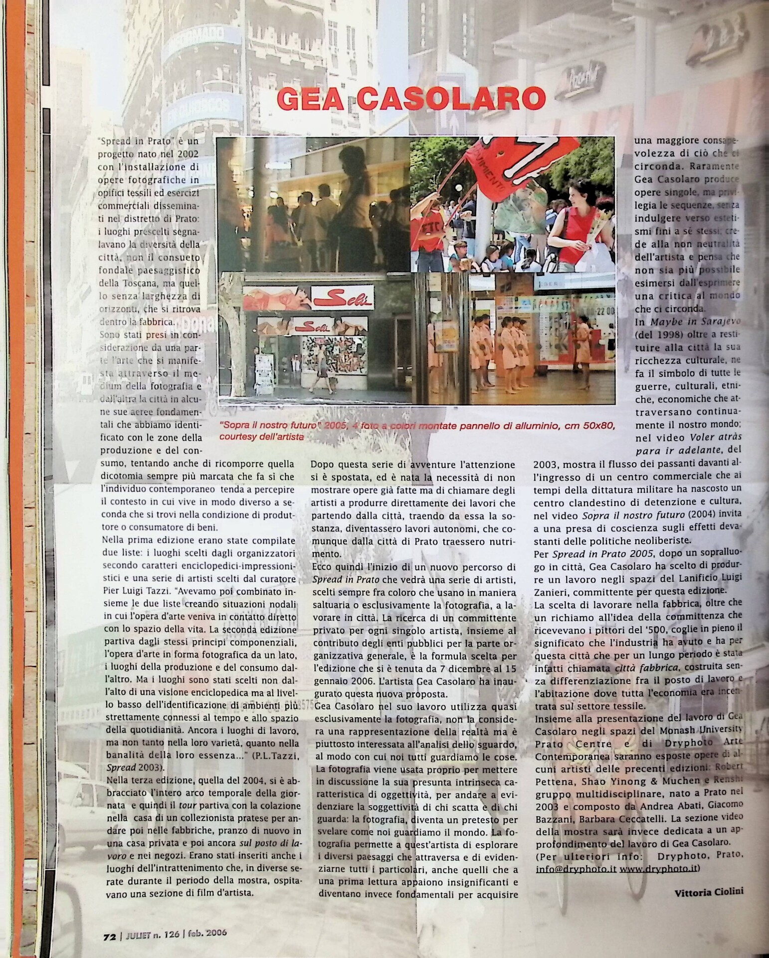 Vittoria Ciolini, Gea Casolaro, «Juliet», n. 126, febbraio-marzo 2006, p. 72