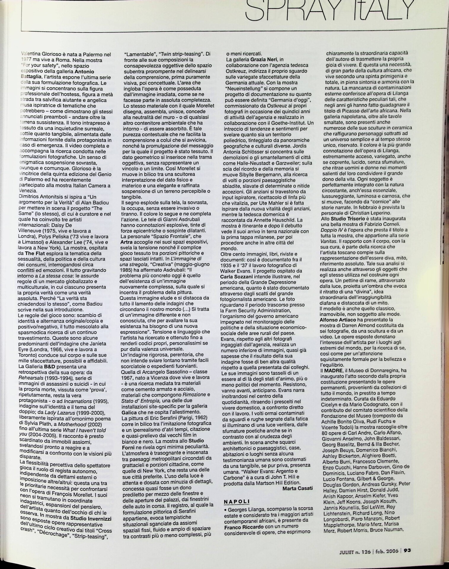 | Cit. bibliografica | Simona Barucco, Napoli, «Juliet», n. 126, febbraio-marzo 2006, pp. 93-94 |