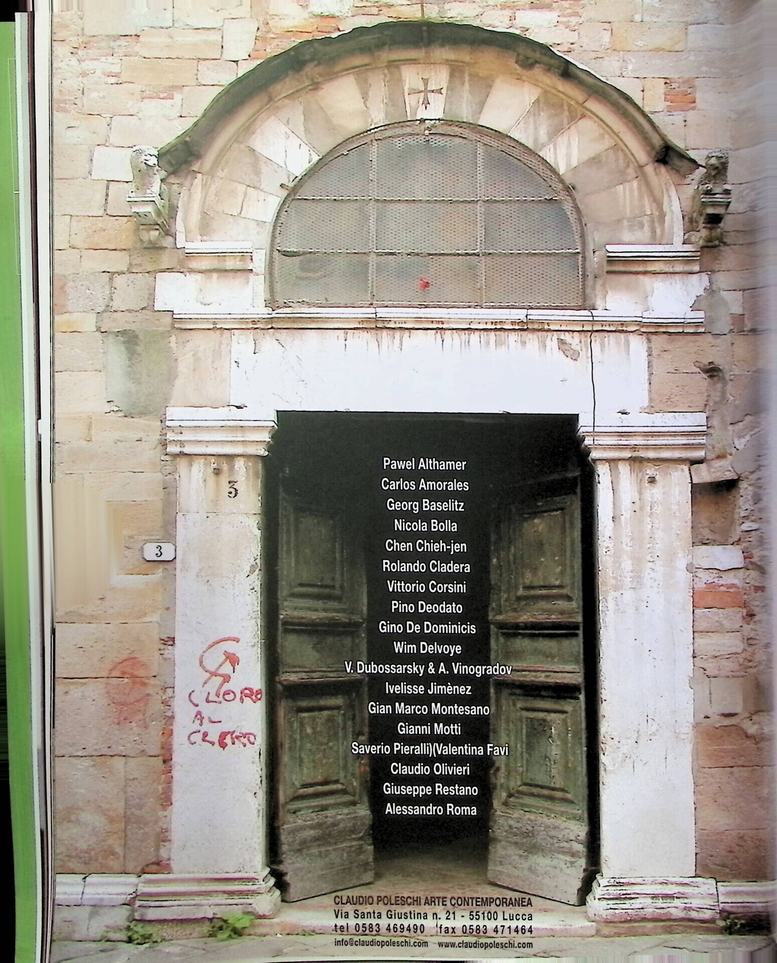| Descrizione | Pubblicità della galleria Claudio Poleschi con la presenza di Carlos Amorales [messicano], Chen Chieh-Jen [taiwanese], Dubossarsky e Vinogradov [russi], Ivalisse Jimènez [portoricana]. |