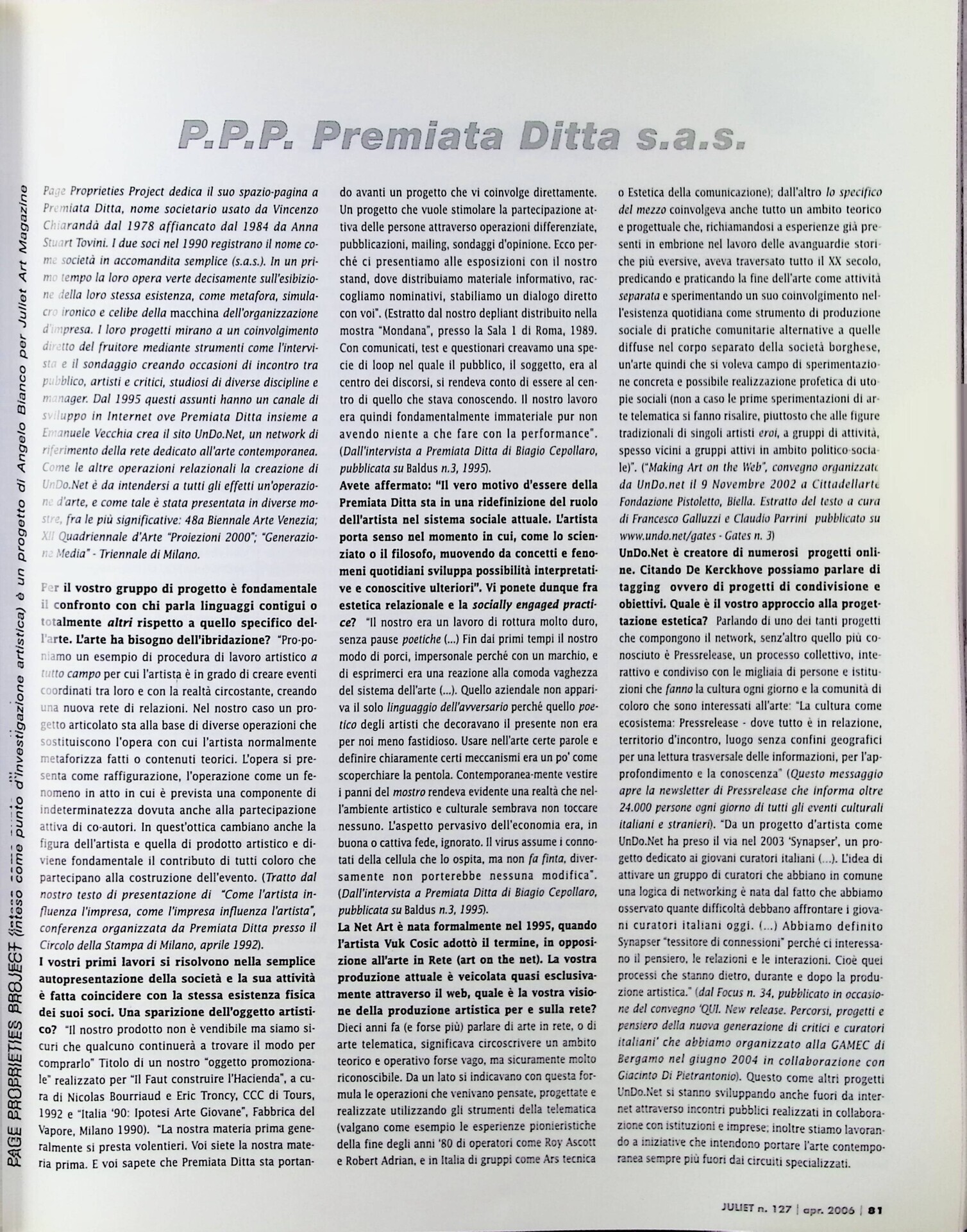 P.P.P. Premiata Ditta s.a.s., «Juliet», n. 127, aprile-maggio 2006, p. 81