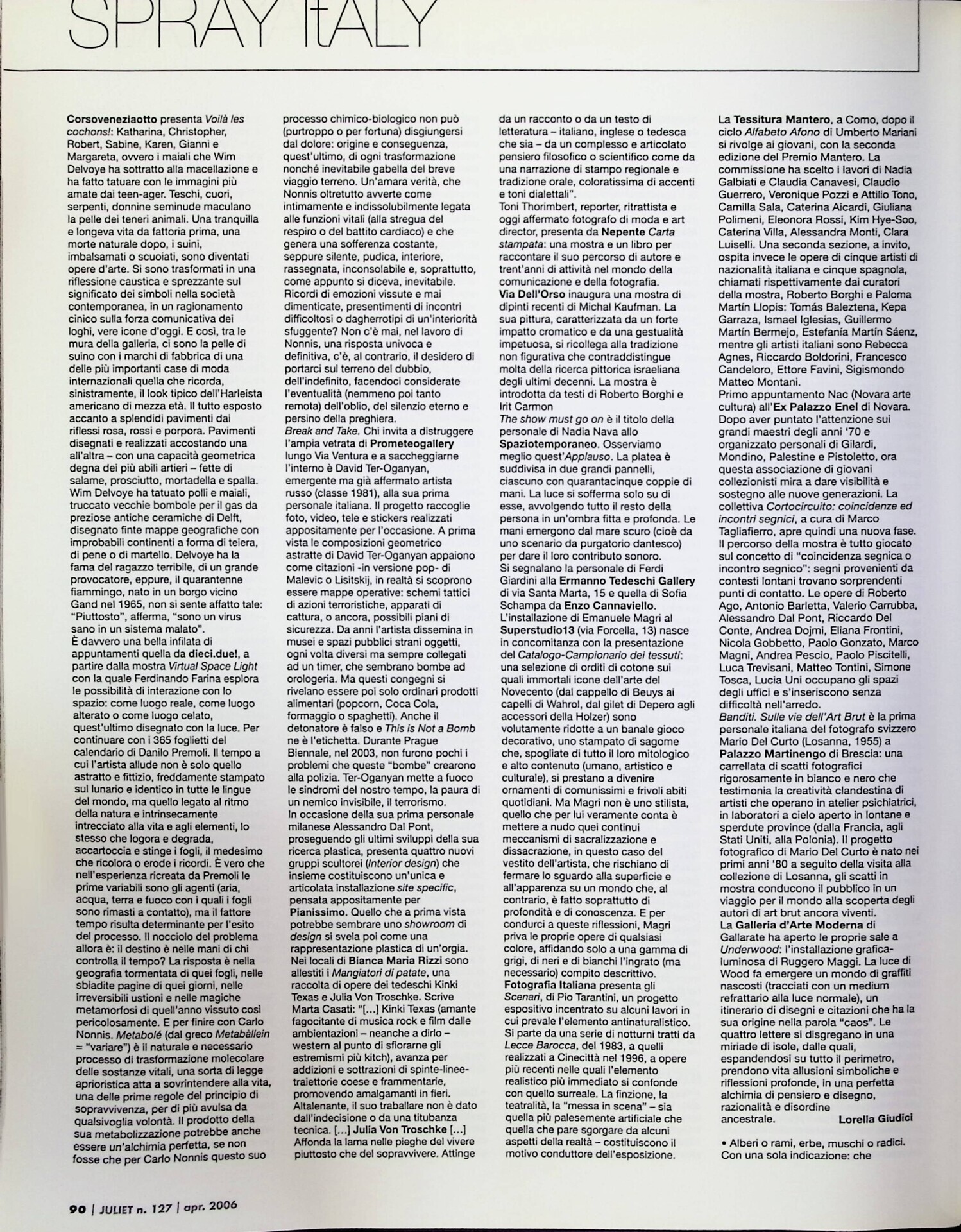 | Cit. bibliografica | Lorella Giudici, Milano, «Juliet», n. 127, aprile-maggio 2006, pp. 89-90 |