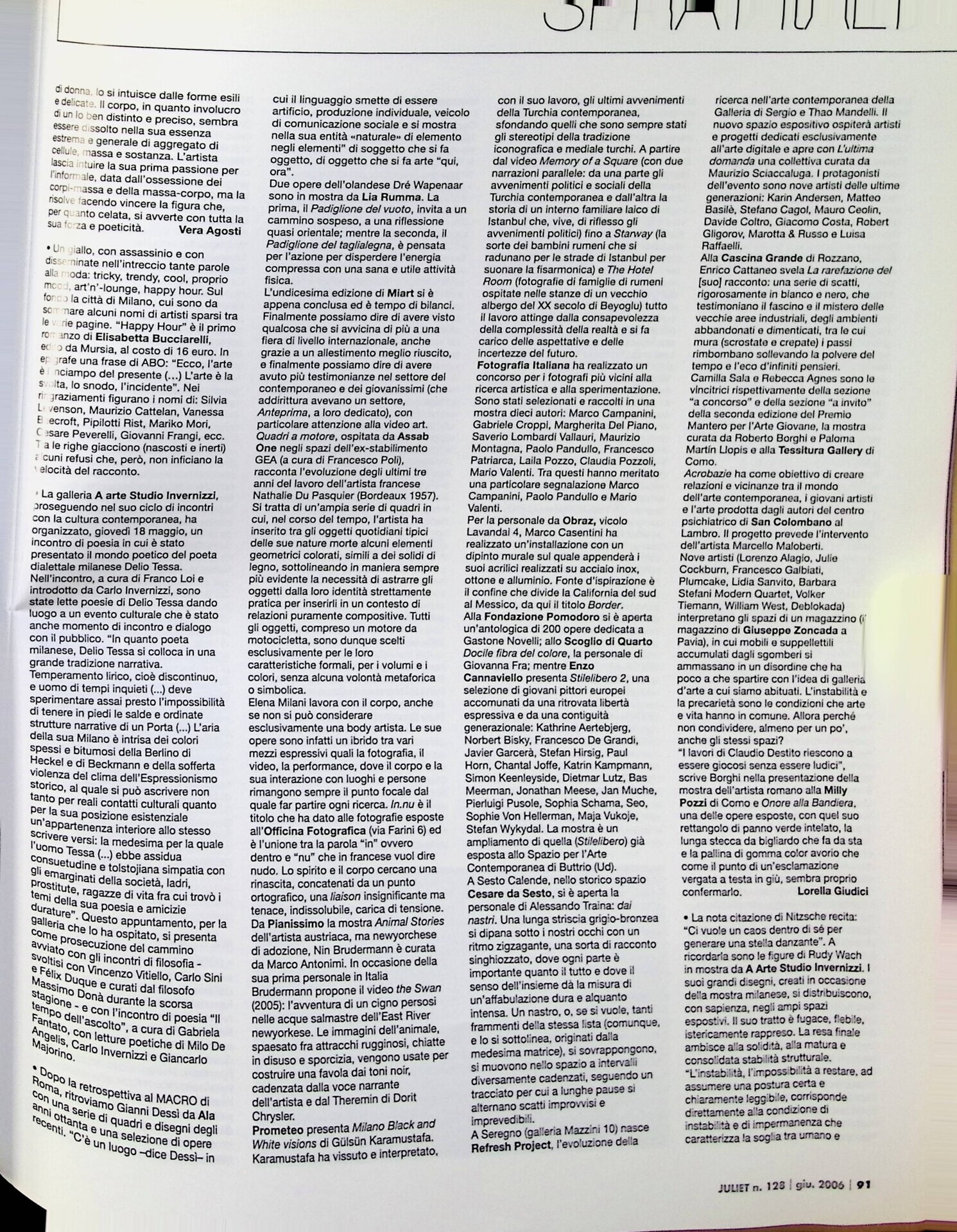 | Cit. bibliografica | Milano, «Juliet», n. 128, giugno 2006, p. 91 |