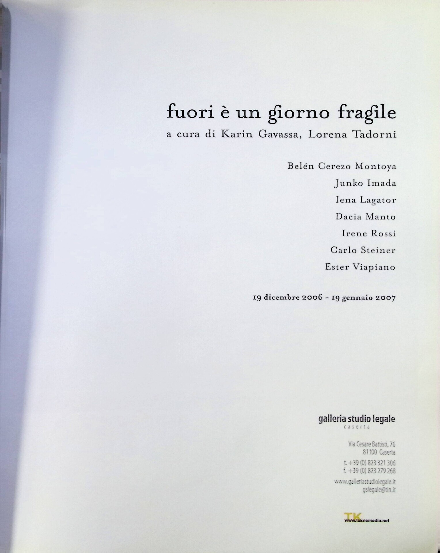 | Descrizione | Pubblicità della mostra Fuori è un giorno fragile con la partecipazione di Junko Imada [giapponese]. |