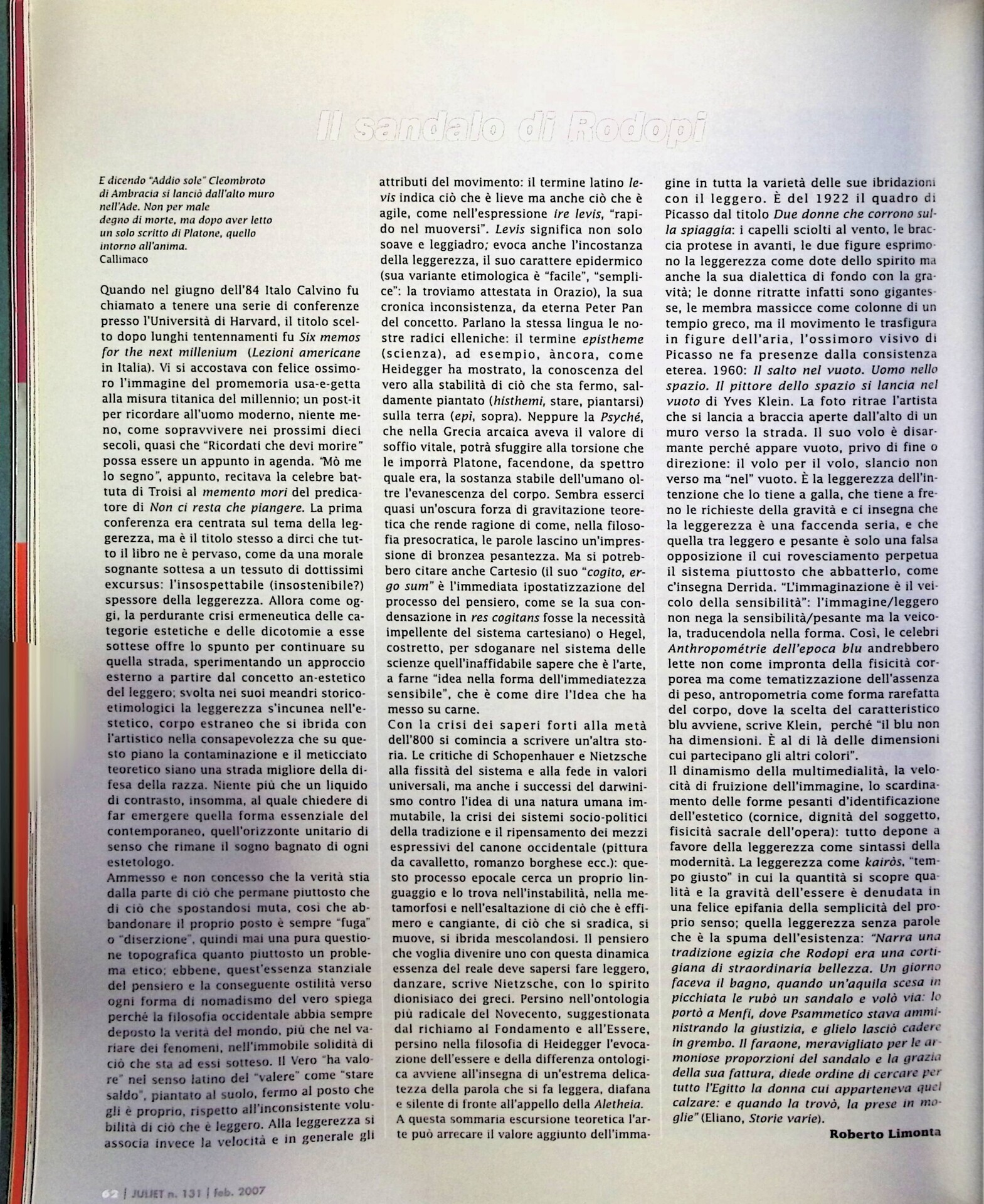 Roberto Limonata, Il sandalo di Rodopi, «Juliet», n. 131, febbraio-marzo 2007, p. 63
