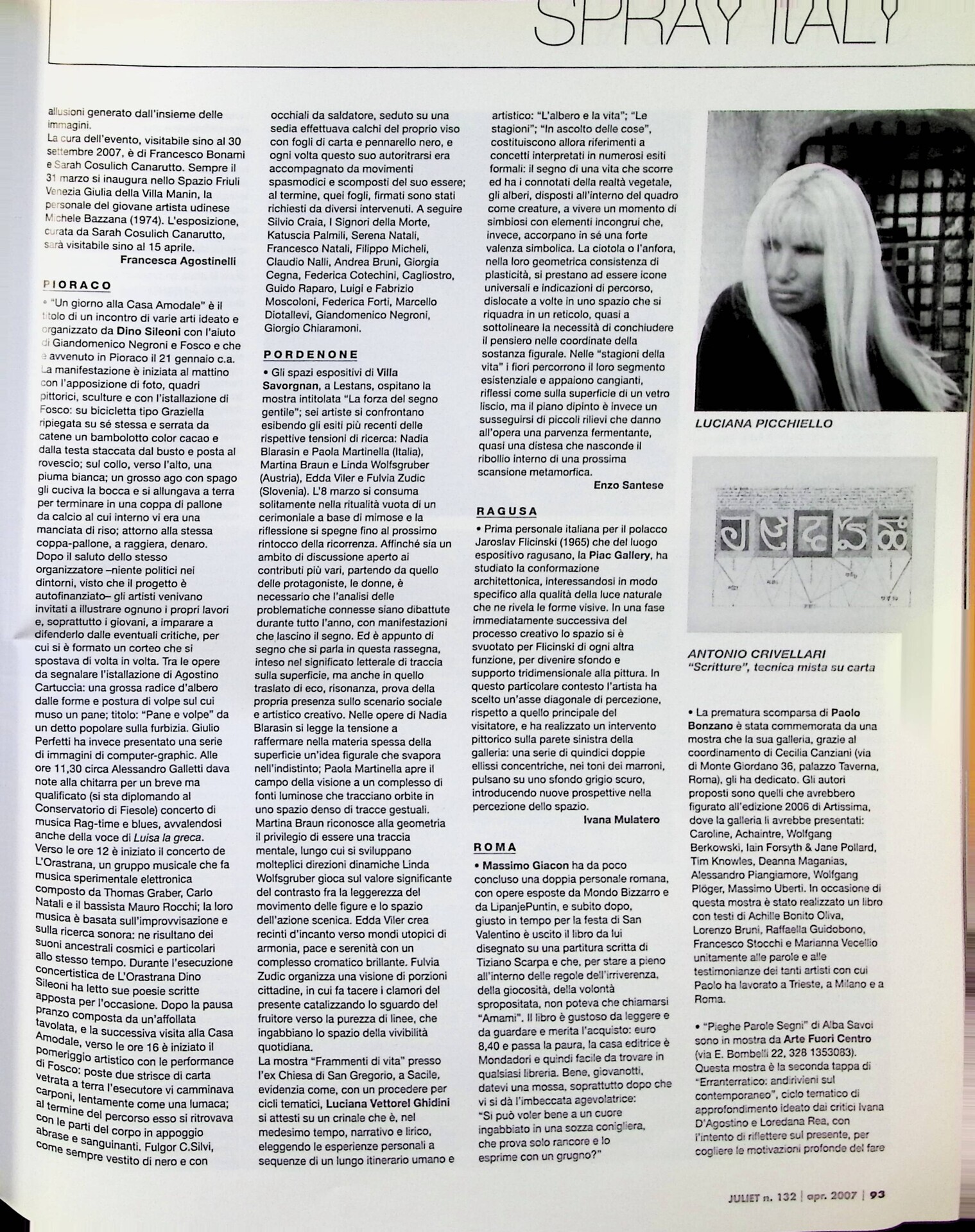Enzo Santese, Pordenone, «Juliet», n. 132, aprile-maggio 2007, p. 93