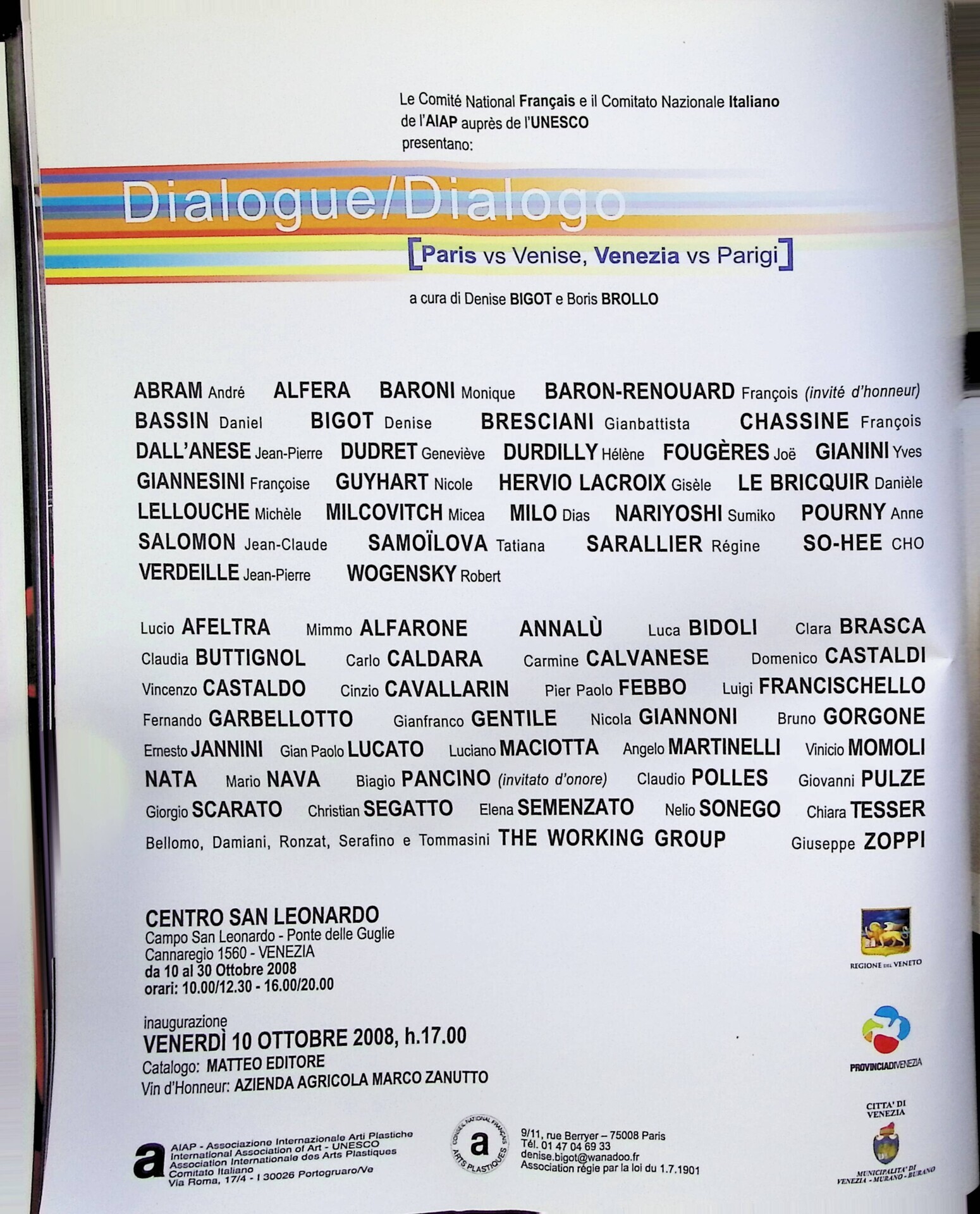 | Descrizione | Pubblicità della mostra Paris vs Venise. Venezia vs Parigi che intavola un dialogo tra artisti italiani e francesi con la partecipazione di Sumiko Nariyoshi [giapponese] e Cho So-Hee [sudcoreana]. |