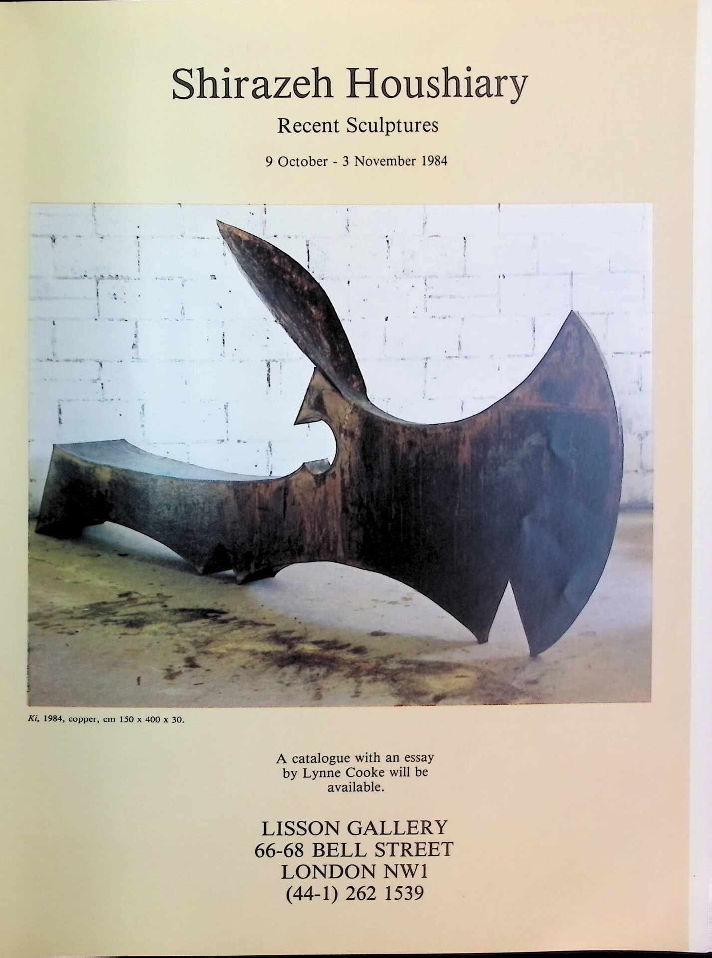 | Descrizione | Segnalazione della mostra Recent Sculptures di Shirazeh Houshiary [iraniana] presso la Lisson Gallery di Londra. |