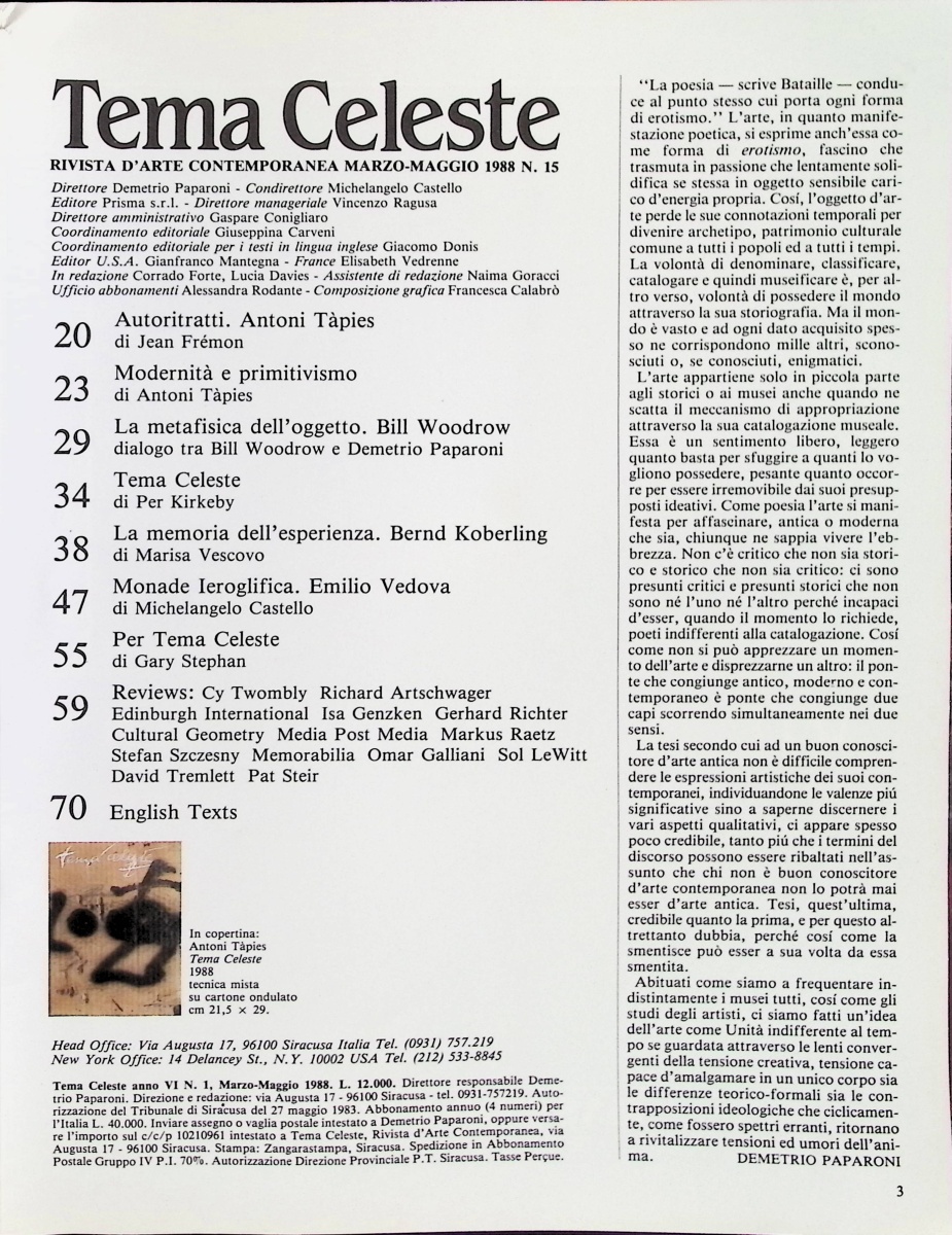 [senza titolo], «Tema Celeste», n. 15, marzo-maggio 1988, p.n.n.