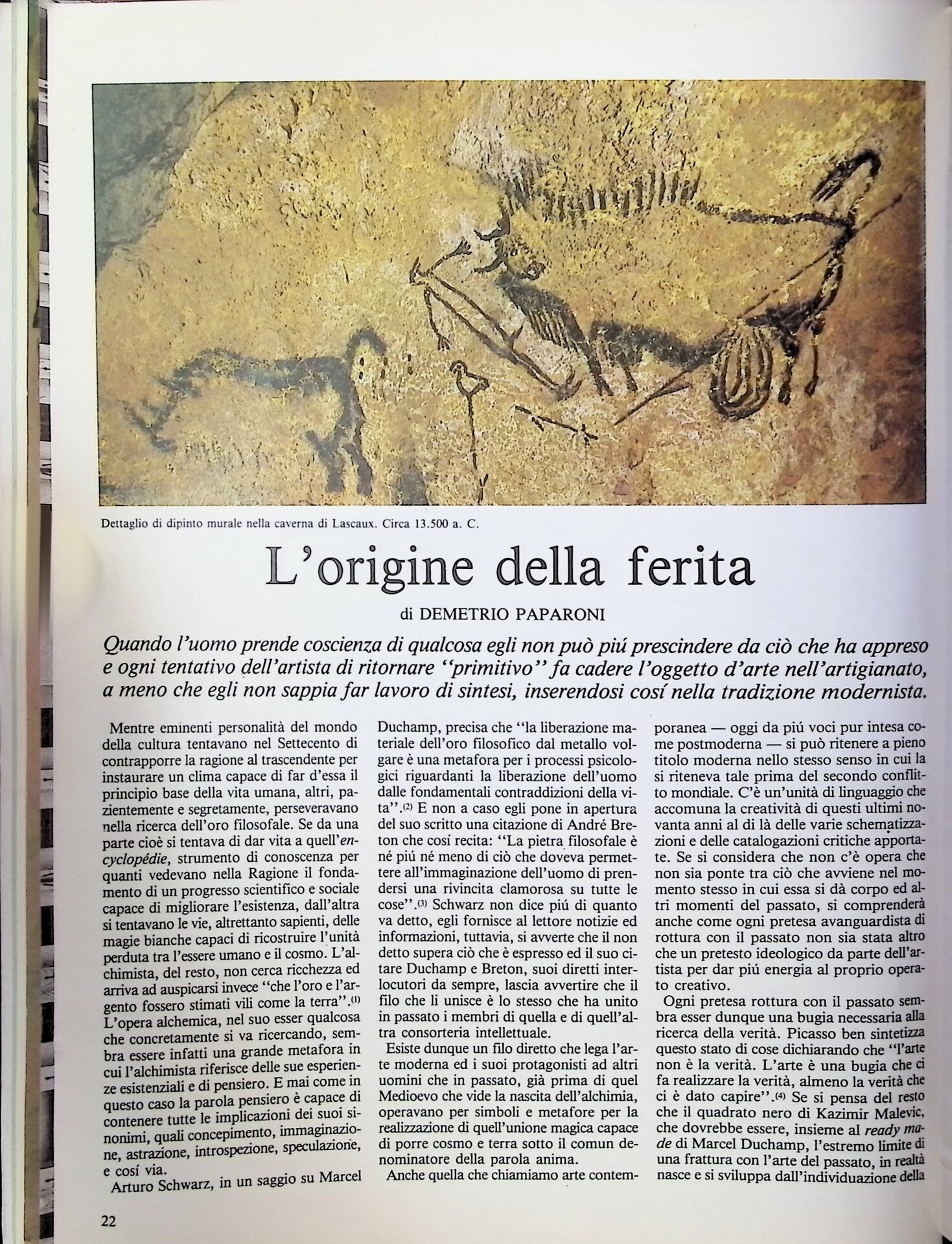 Demetrio Paparoni, L'Origine della ferita, «Tema Celeste», n. 16, giugno-settembre 1988, pp. 22-30
