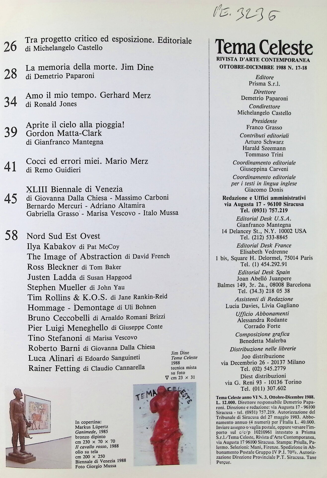 | Cit. bibliografica | Ronald Jones, Amo il mio tempo. Gerhard Merz, «Tema Celeste», n. 17/18, ottobre-dicembre 1988, pp. 34-37 |