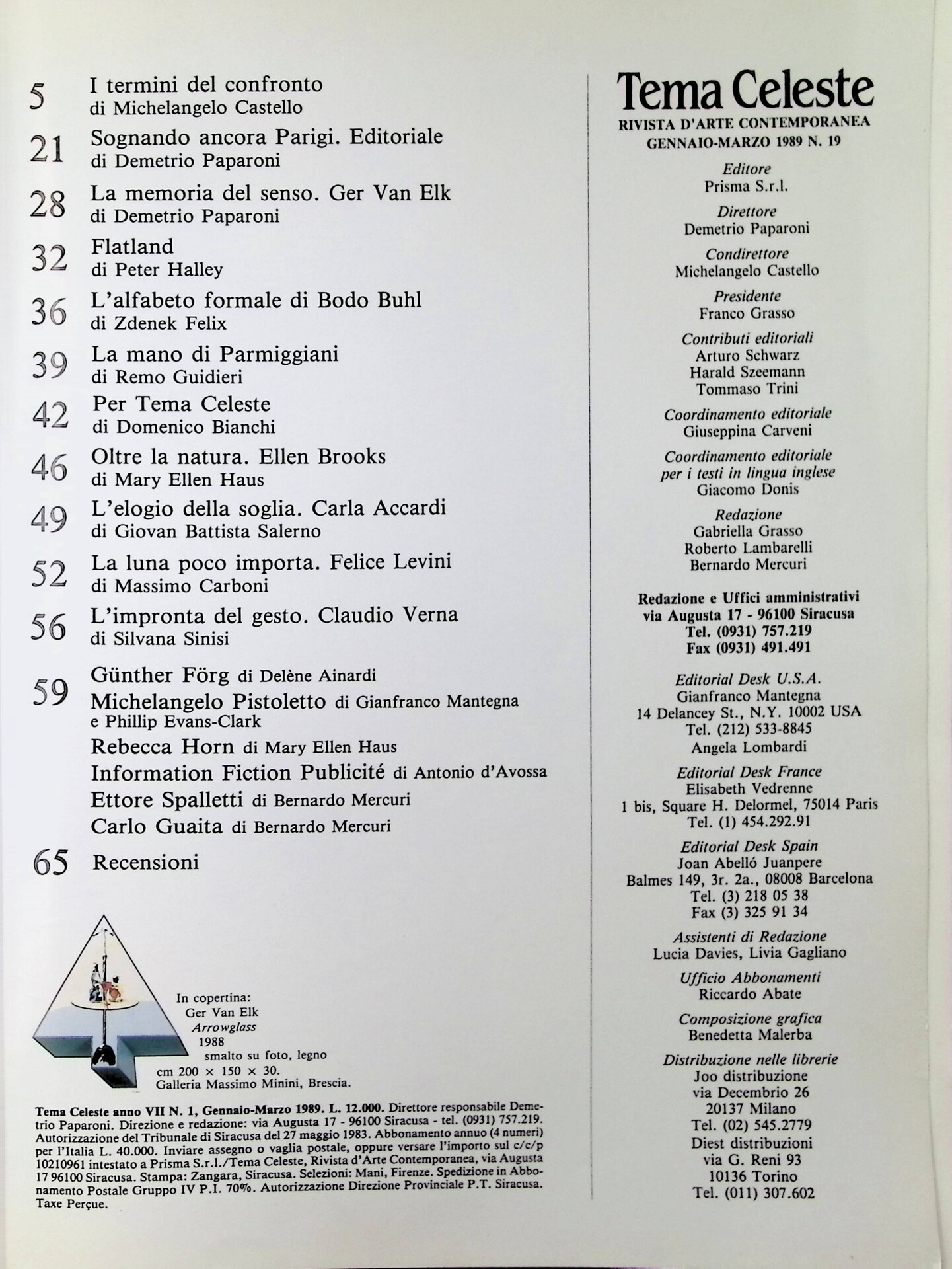 | Cit. bibliografica | [senza titolo], «Tema Celeste», n. 19, gennaio-marzo 1989, p.n.n. |