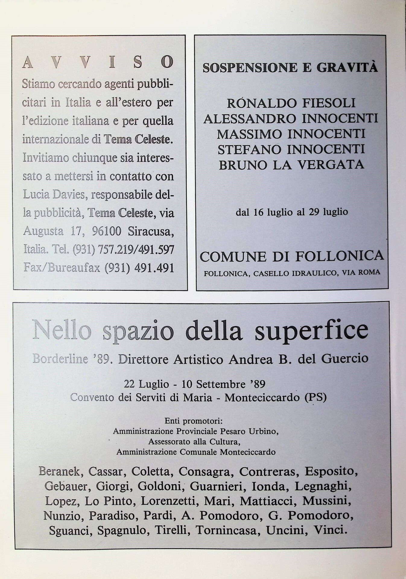 [senza titolo], «Tema Celeste», n. 21, luglio-settembre 1989, p.n.n.