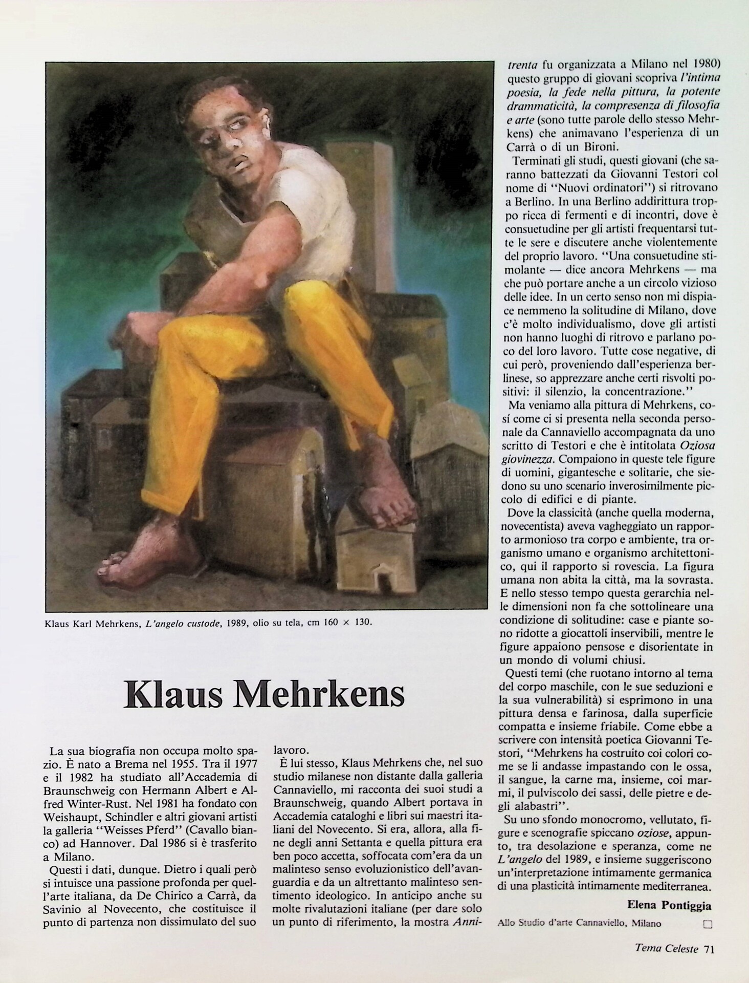 Elena Pontiggia, Klaus Mehrkens, «Tema Celeste», n. 21, luglio-settembre 1989, p. 71