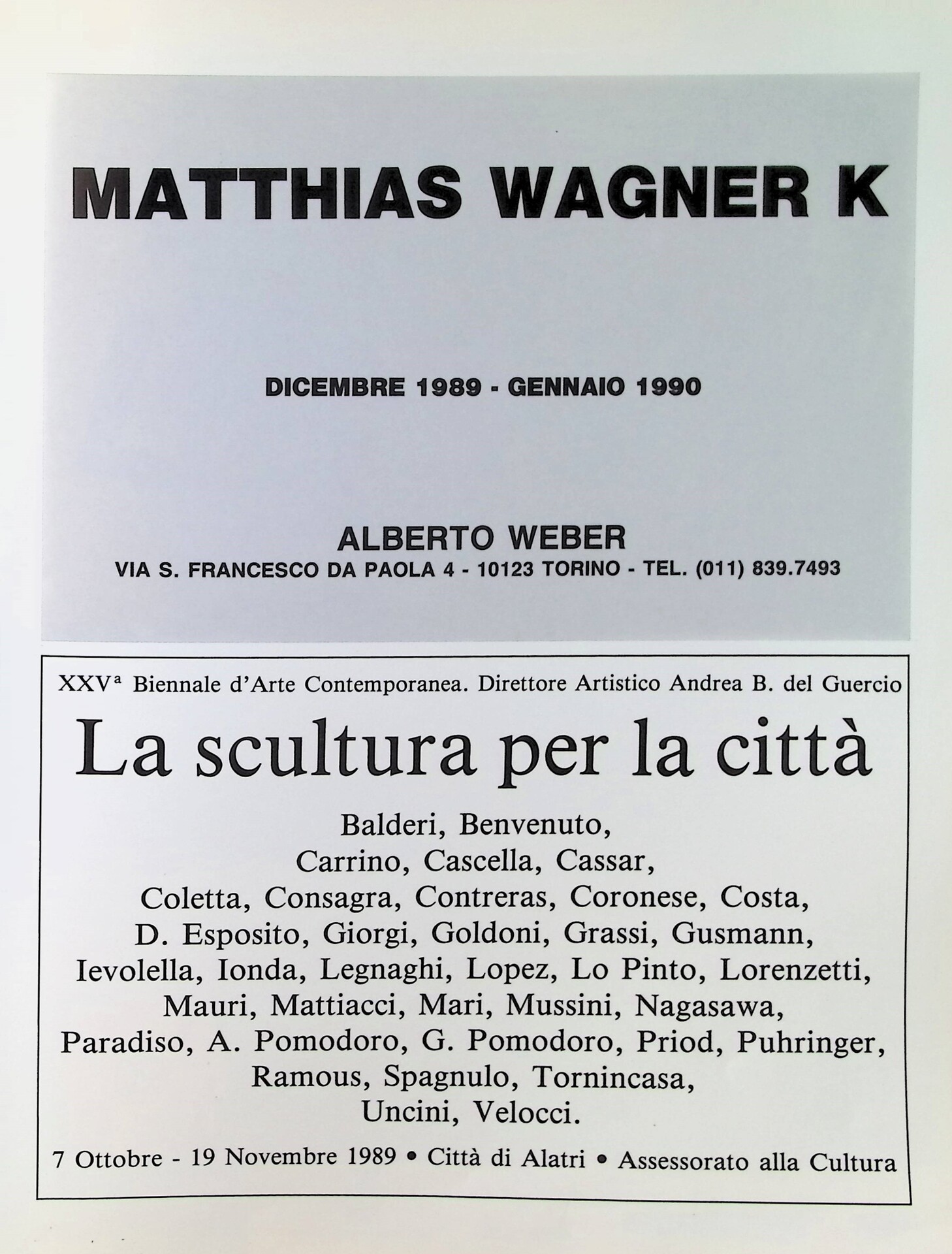 | Descrizione | Pubblicità della XXV Biennale d'arte contemporanea di Alatri, in cui sono presenti Contreras [messicano] e Hidetoshi Nagasawa [giapponese]. |
