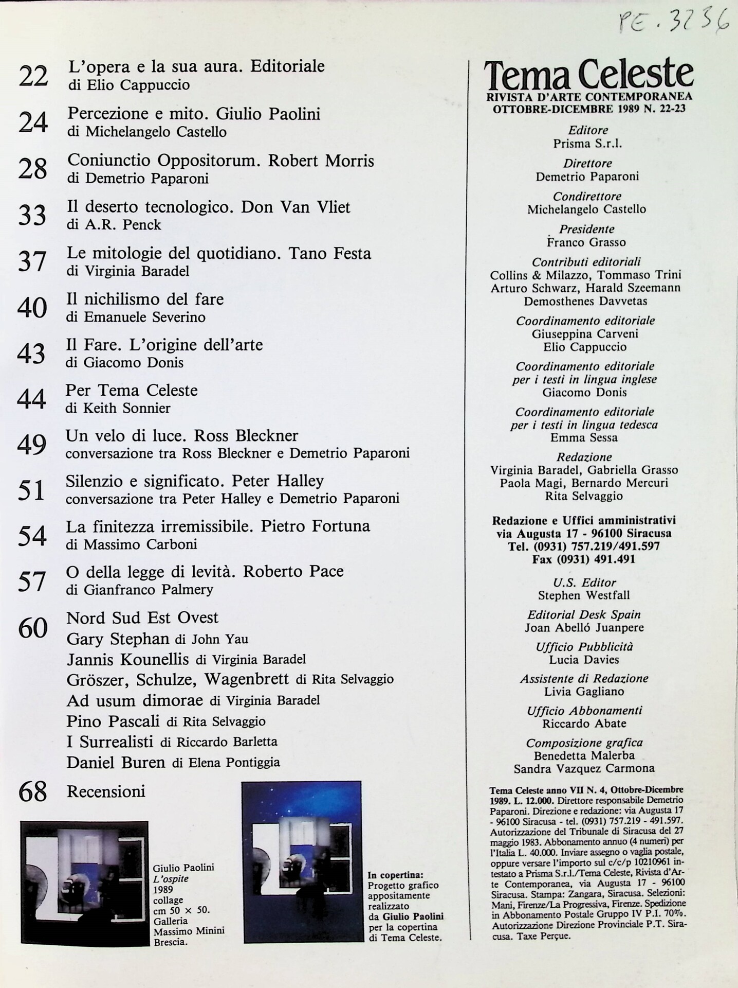 [senza titolo], «Tema Celeste», n. 22/23, ottobre-dicembre 1989, p.n.n.