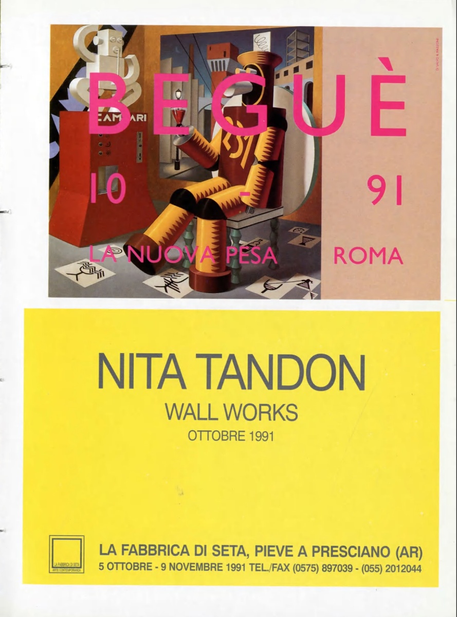 | Descrizione | Pubblicità della mostra personale di Nita Tandon [indiana] alla galleria La Fabbrica di Seta. |