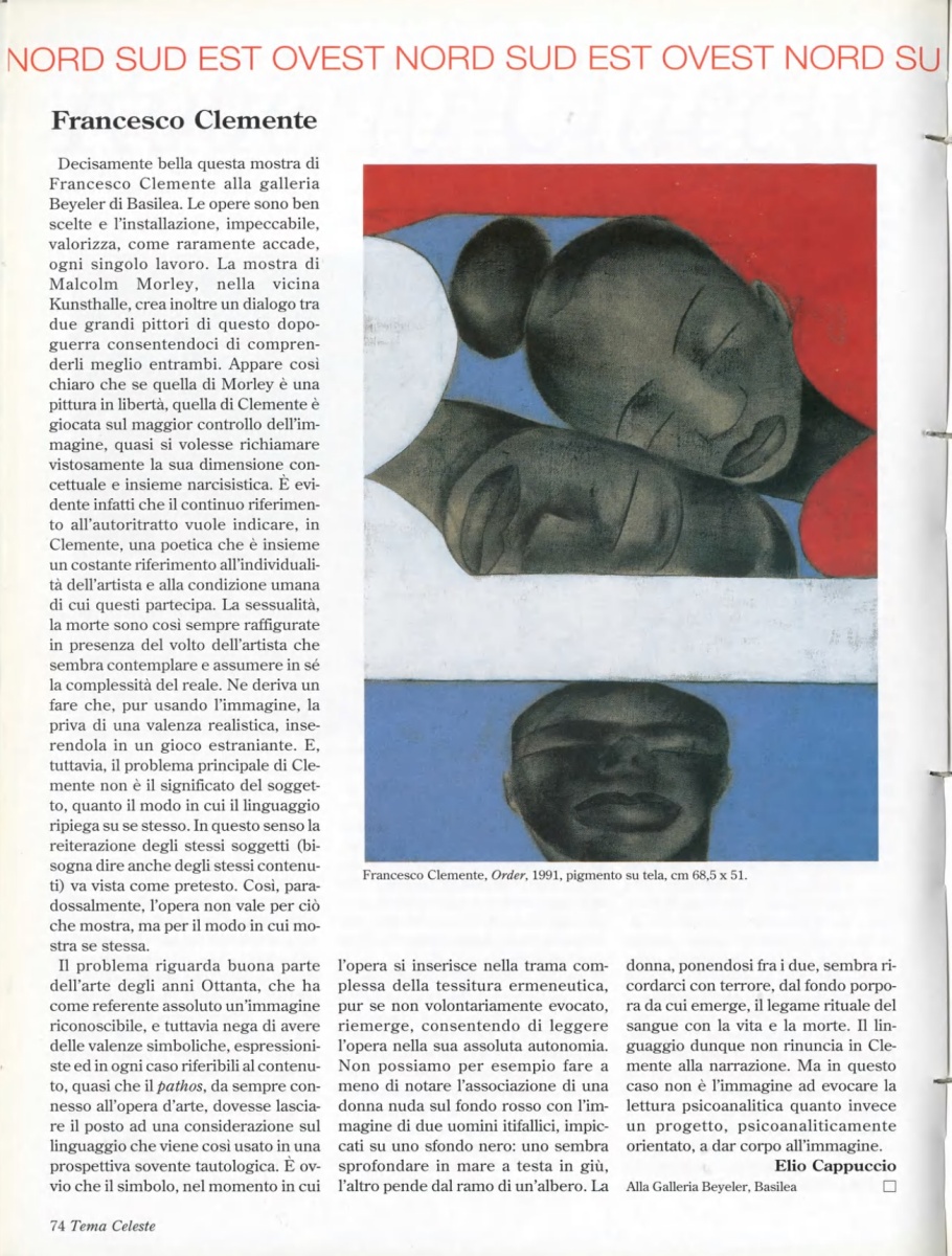 Elio Cappuccio, Francesco Clemente, «Tema Celeste», n. 32/33, autunno 1991, p. 74
