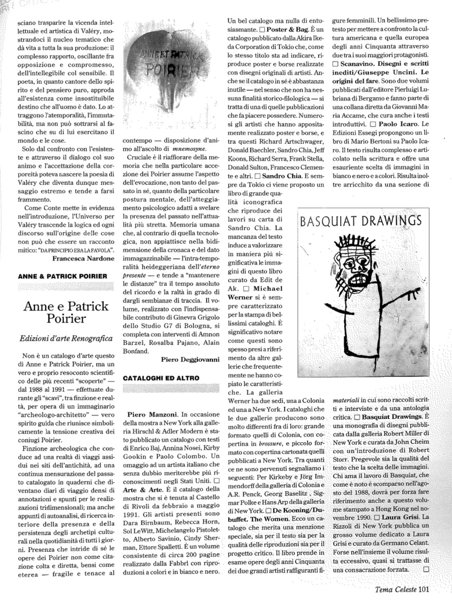 Cataloghi ed altro. Basquiat Drawings, «Tema Celeste», n. 34, gennaio-marzo 1992, p. 101