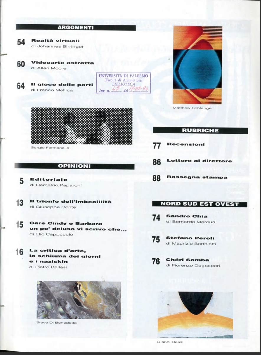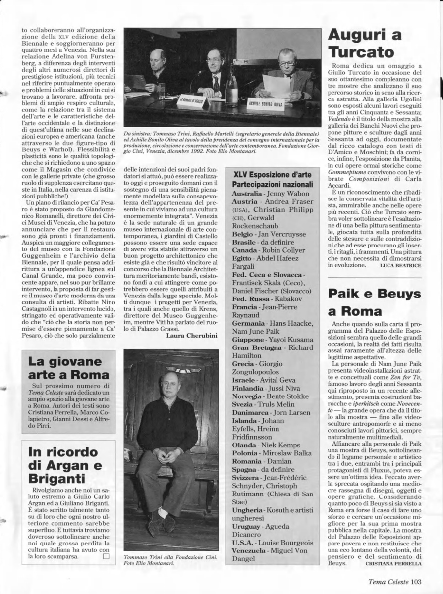 XLV Esposizione d'arte. Partecipazioni nazionali, «Tema Celeste», n. 39, inverno 1993, p. 103
