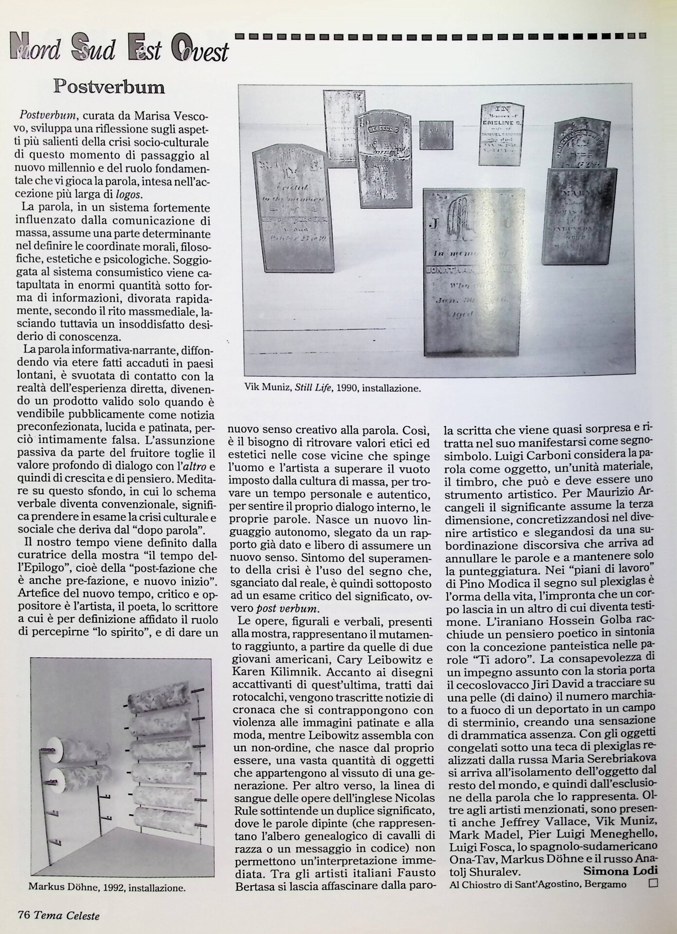 Simona Lodi, Postverbum, «Tema Celeste», n. 41, estate 1993, p. 76