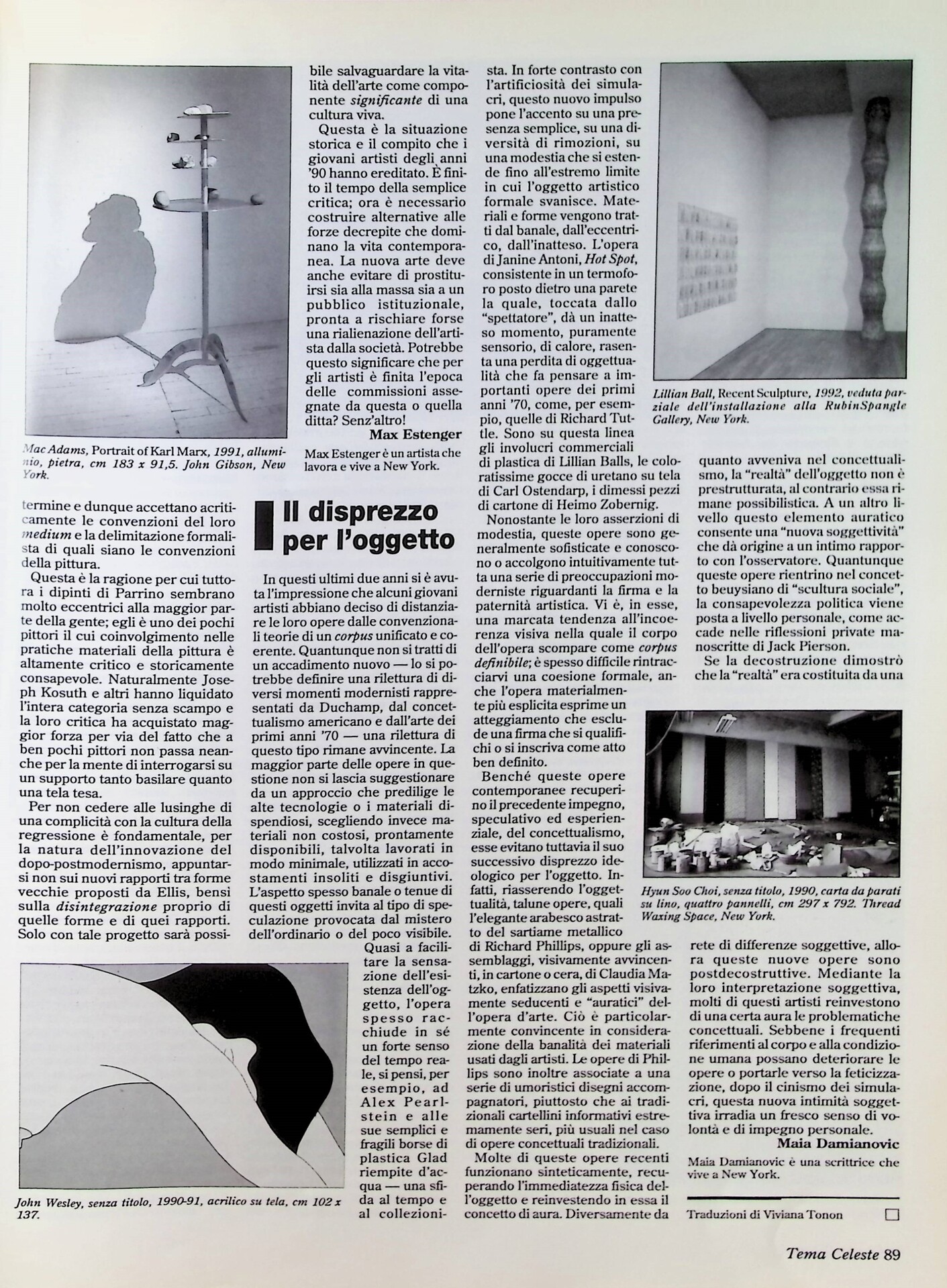 Maia Damianovic, Il disprezzo per l'oggetto, «Tema Celeste», n. 41, estate 1993, p. 89