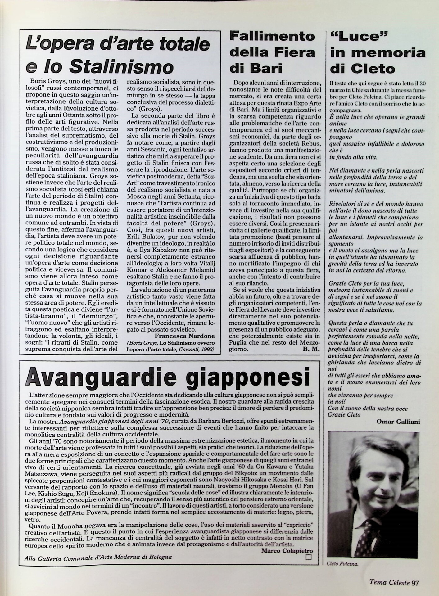 | Cit. bibliografica | Francesca Nardone, L'opera d'arte totale e lo Stalinismo, «Tema Celeste», n. 41, estate 1993, p. 97 |